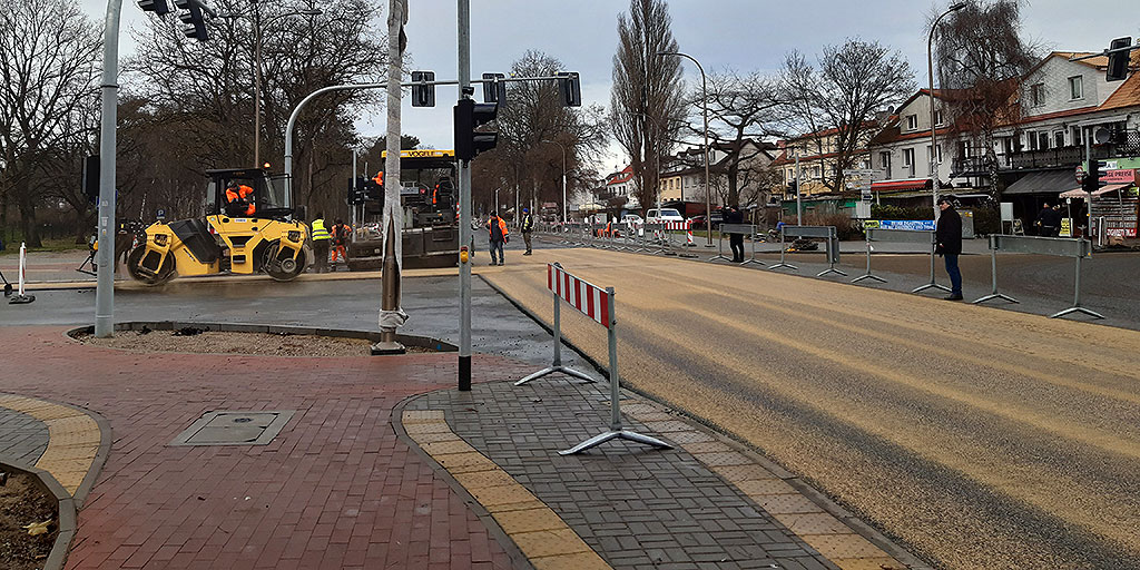 Roboty bitumiczne rozpoczęto od miejsca najbliższego centrum miasta. W poniedziałek i wtorek (16-17 grudnia) wyasfaltowane zostanie skrzyżowanie ul. Wojska Polskiego – 11 listopada – Moniuszki. W środę planowane jest układanie masy na środkowej części drogi, a na czwartek i piątek zaplanowano ułożenie asfaltu na części najbliższej granicy.