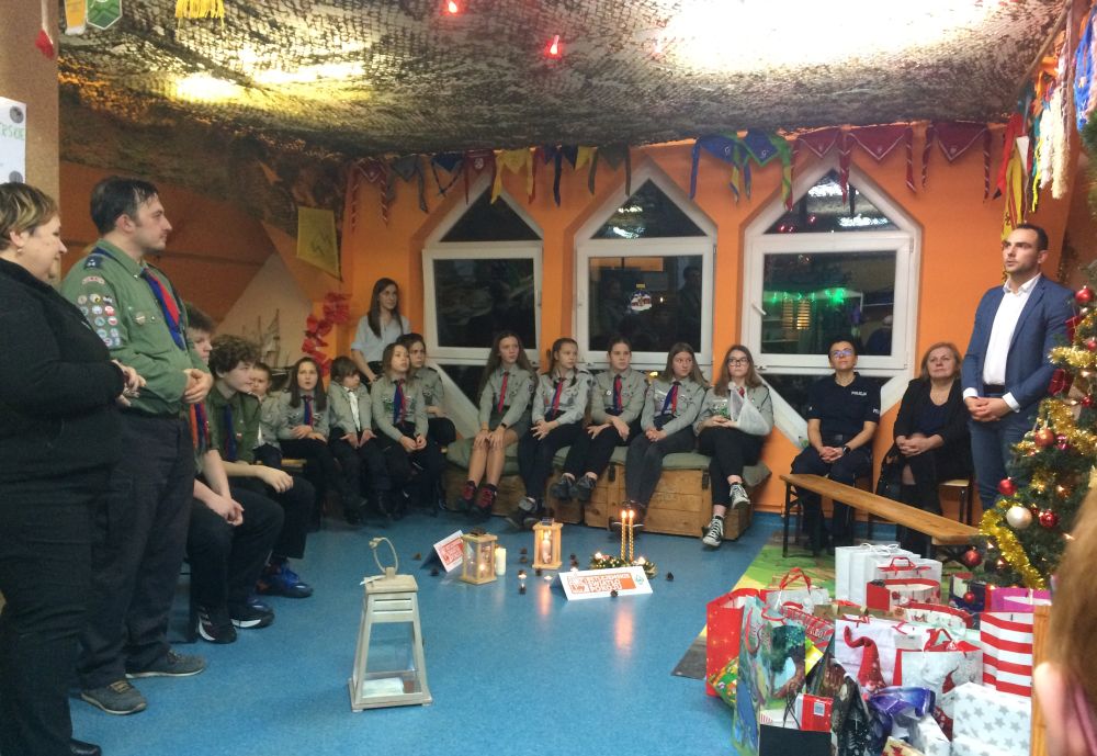 Wigilia rozpoczęła się od uroczystego rozpakowania drzwi do nowej harcówki. Cała uroczystość odbywała się przy harcerskim świecowisku, któremu towarzyszyło Betlejemskie Światło Pokoju. Oprawę prowadzili phm. Tomasz Rychłowski i trop. Ewelina Wancisiewicz.