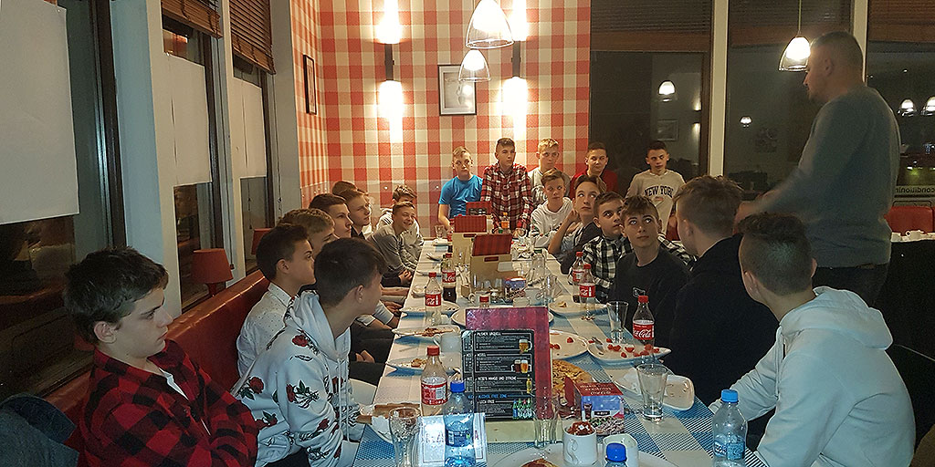 W minioną środę, w pizzerii Da Grasso, odbyła się impreza zakończenia rundy jesiennej sezonu 2019/20 drużyny trampkarzy młodszych i starszych Morskiego Klubu Sportowego Flota w Świnoujściu. Oprócz młodych piłkarzy, obecni byli trenerzy obu drużyn Grzegorz Skwara oraz Piotr Wysocki, a także wiceprezes klubu Marcin Adamski.