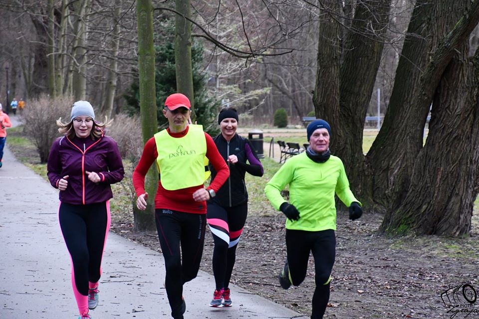 Dzisiejszy poranek, był gwarny i wesoły, a to za sprawą wszystkich tych, którzy postanowili rozpocząć dzień od sportowego akcentu. Podobno bieganie ma tyle zalet, że poprawa nastroju staje się niejako efektem ubocznym i właśnie taki efekt daje nasza parkrunowa piątka. Mało tego, chyba nawet samo wyjście z domu i przyjście w sobotę do parku wprawia wielu w dobry humor, bo nasze poranki są zawsze „uśmiechnięte”. I tym razem było podobnie, 64 biegaczy i chodziarzy ( z kijkami i bez kijków), 18 wolontariuszy i wolontariuszek i mała grupka kibiców płci różnej przywitało 18. stycznia ze sportową euforią. Oprócz stałych bywalców, nasze szeregi zasilili goście: Piotr z Kalisza, który zapowiedział się również za tydzień, oraz Kornelia z Wolina, bywająca u nas dwa razy do roku , a także dwóch debiutantów z naszego pięknego miasta.😀