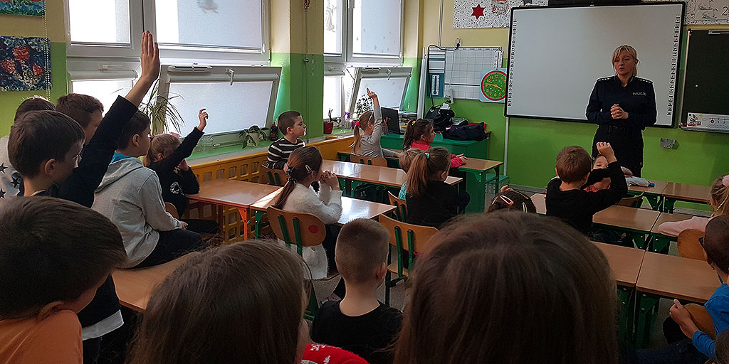 W piątek 17 stycznia uczniowie ze Szkoły Podstawowej nr 4 z Oddziałami Integracyjnymi w Świnoujściu mieli okazję spotkać się z przedstawicielką Komendy Miejskiej Policji – panią Agnieszką Wojtkiewicz. W spotkaniu wzięli udział uczniowie z klasy III C i I B wraz z wychowawcami. Tematem spotkania była przemoc, czym tak naprawdę jest, jakie przybiera formy i do czego może prowadzić. Dzieci dowiedziały się również, w jaki sposób należy radzić sobie z przemocą i agresją. Oprócz tego poruszane były tematy dotyczące szeroko rozumianego bezpieczeństwa w szkole i poza nią. Uczniowie zadawali pytania, uzyskując  rzetelne odpowiedzi. Mamy nadzieję, że spotkanie uświadomiło dzieciom, jakie zagrożenia wynikają z agresji i przemocy.