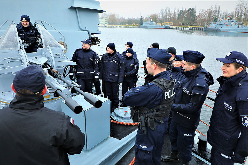 Przez ostatnie tygodnie, policjanci pełniący służbę na ulicach Świnoujścia, w ramach adaptacji zawodowej, dbali o bezpieczeństwo mieszkańców Świnoujścia. W ramach podziękowania dla młodych policjantów, Komendant Miejski Policji w Świnoujściu – insp. Grzegorz Śrek, dzięki uprzejmości Dowódcy 8. Flotylli Obrony Wybrzeża – kontradm. Piotra Niecia, zaprosił policjantów adaptacji zawodowej do zwiedzenia Komendy Portu Wojennego oraz stacjonujących na jej terenie jednostek pływających.