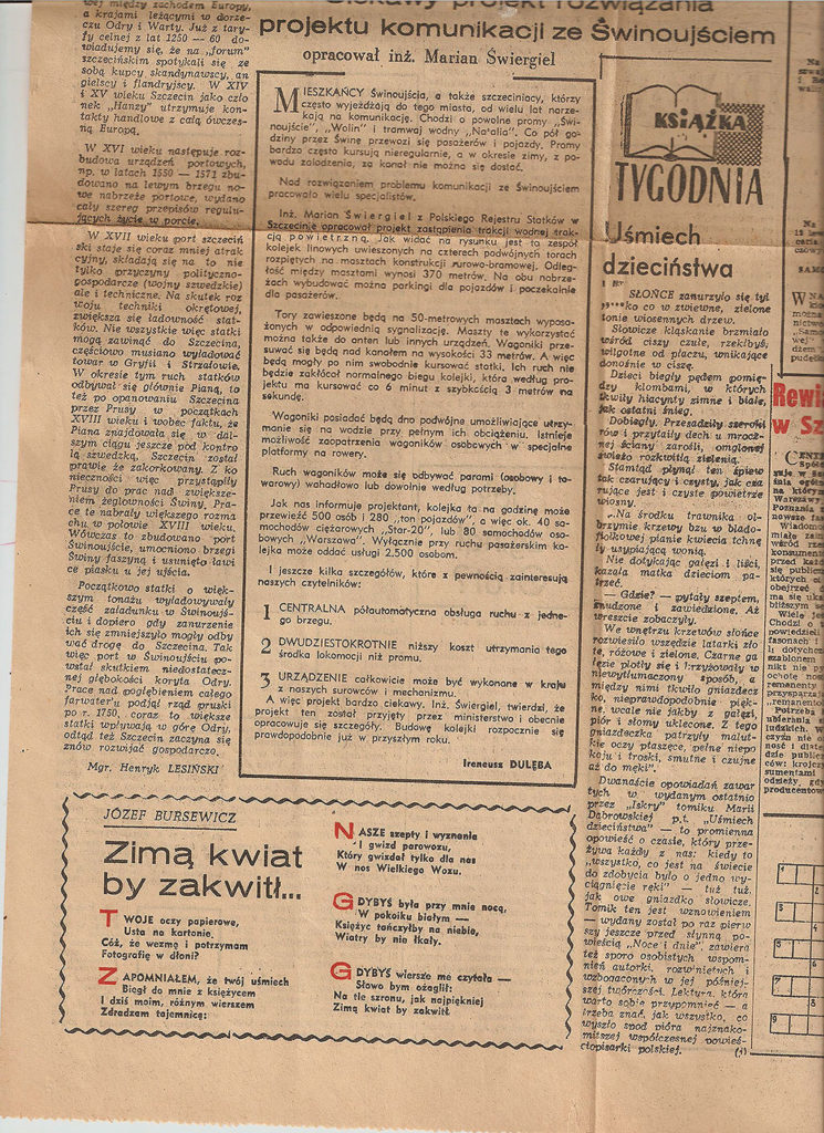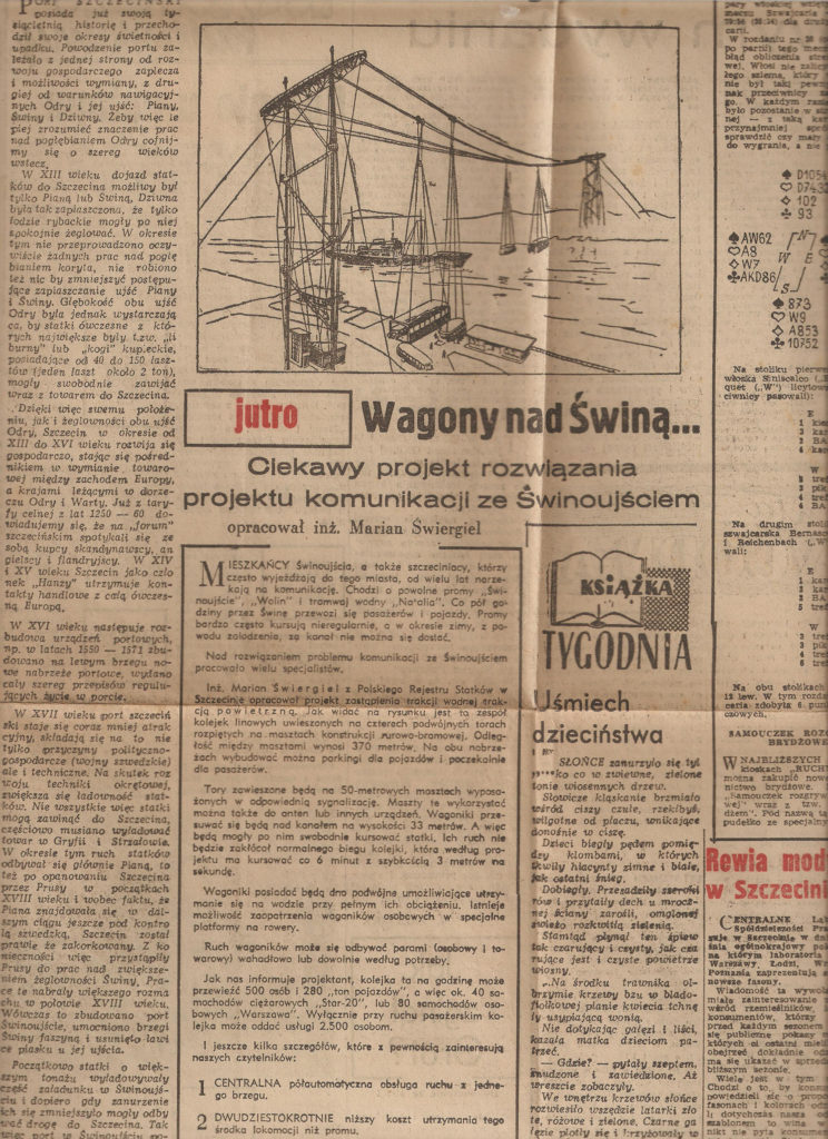 Jeden z naszych Czytelników, przeglądając domowe archiwum, znalazł pamiątki po swoim ojcu. To kawałek historii Świnoujścia, który rzuca nowe światło na komunikację przez Świnę. Inżynier Marian Świergiel pracował nad poprawą komunikacji przez cieśninę. Jego pomysł był wyprzedzający przyszłość.