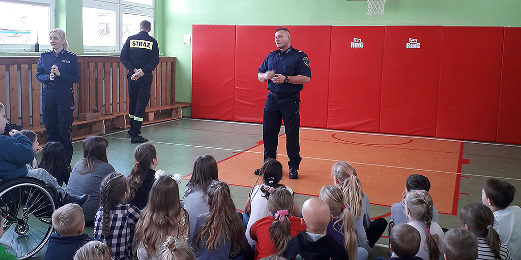 Bezpieczne ferie. Spotkanie uczniów z policjantami, strażakami i strażnikami