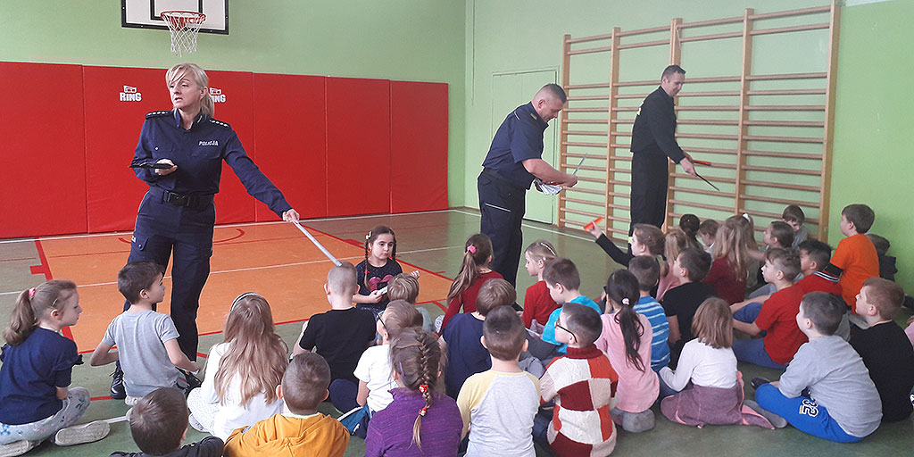 Funkcjonariusze przypomnieli o różnych niebezpieczeństwach czyhających na dzieci w trakcie ferii zimowych. Szczególnie skupili się na omówieniu z uczniami zasad bezpieczeństwa podczas uprawiania sportów zimowych, przestrzegali przed ślizganiem na skutych lodem rzekach i stawach oraz ostrzegali przed zjeżdżaniem z górek znajdujących się blisko ulic.
