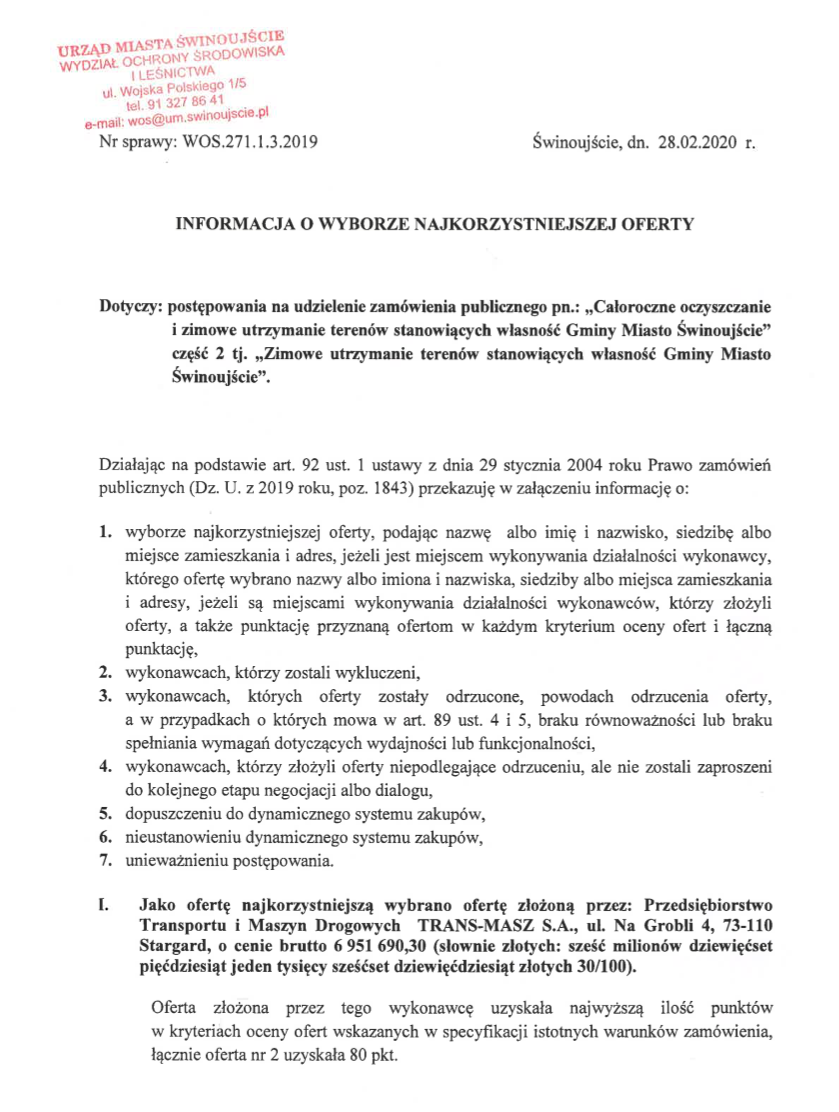 I bardzo dobrze. Wreszczie ktoś bedzie odsniezal a nie sciemniał. Ta firma utrzymuje drogi wokoło szczecina i jest solidna.
