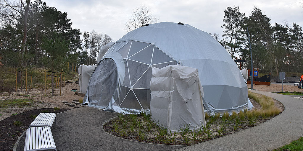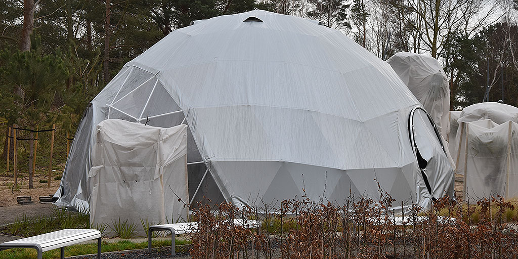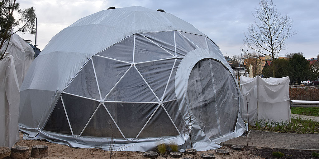 Pierwsza kopuła już została zamontowana. Ma średnicę 9 metrów, wysokość 4,5 metrów. Po dwóch stronach namiotów znajdują się wejścia. Konstrukcja została pokryta specjalną membraną PVC.