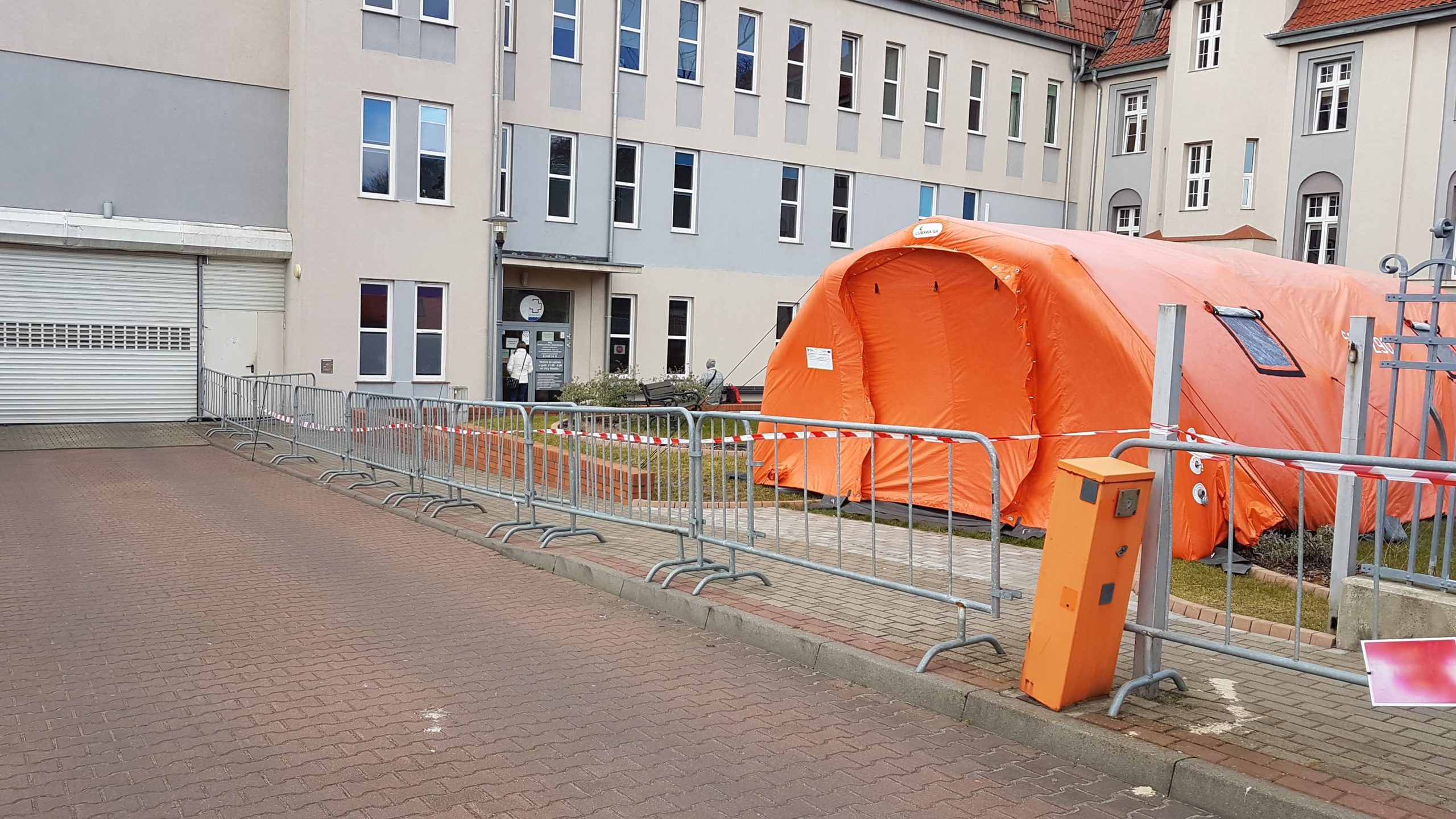 Przed wejściem do szpitala ustawiono polową izbę przyjęć. Zobacz zdjęcia!