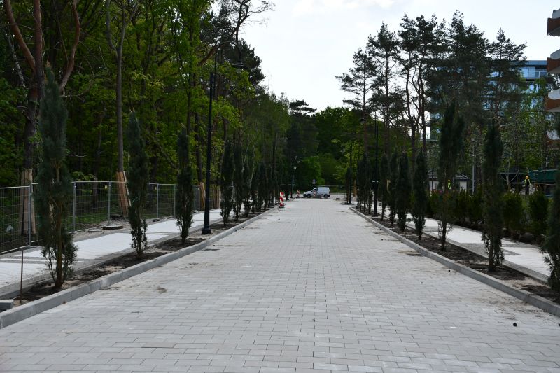Plażowicze już niedługo będą mogli korzystać z kolejnego wygodnego zejścia na plażę. Wykonano już większość nawierzchni jezdni i chodników przy powstającym przedłużeniu ulicy Zdrojowej. Równolegle postępują prace przy zejściu na plażę, które nabiera coraz wyraźniejszych kształtów. Przy chodnikach wykonano nasadzenia zieleni – sosnę kolumnową, cisy, wydmuchrzycę. Trwają prace przy murze oporowym z gabionów. Wykonawca deklaruje zakończenie prac do końca maja.