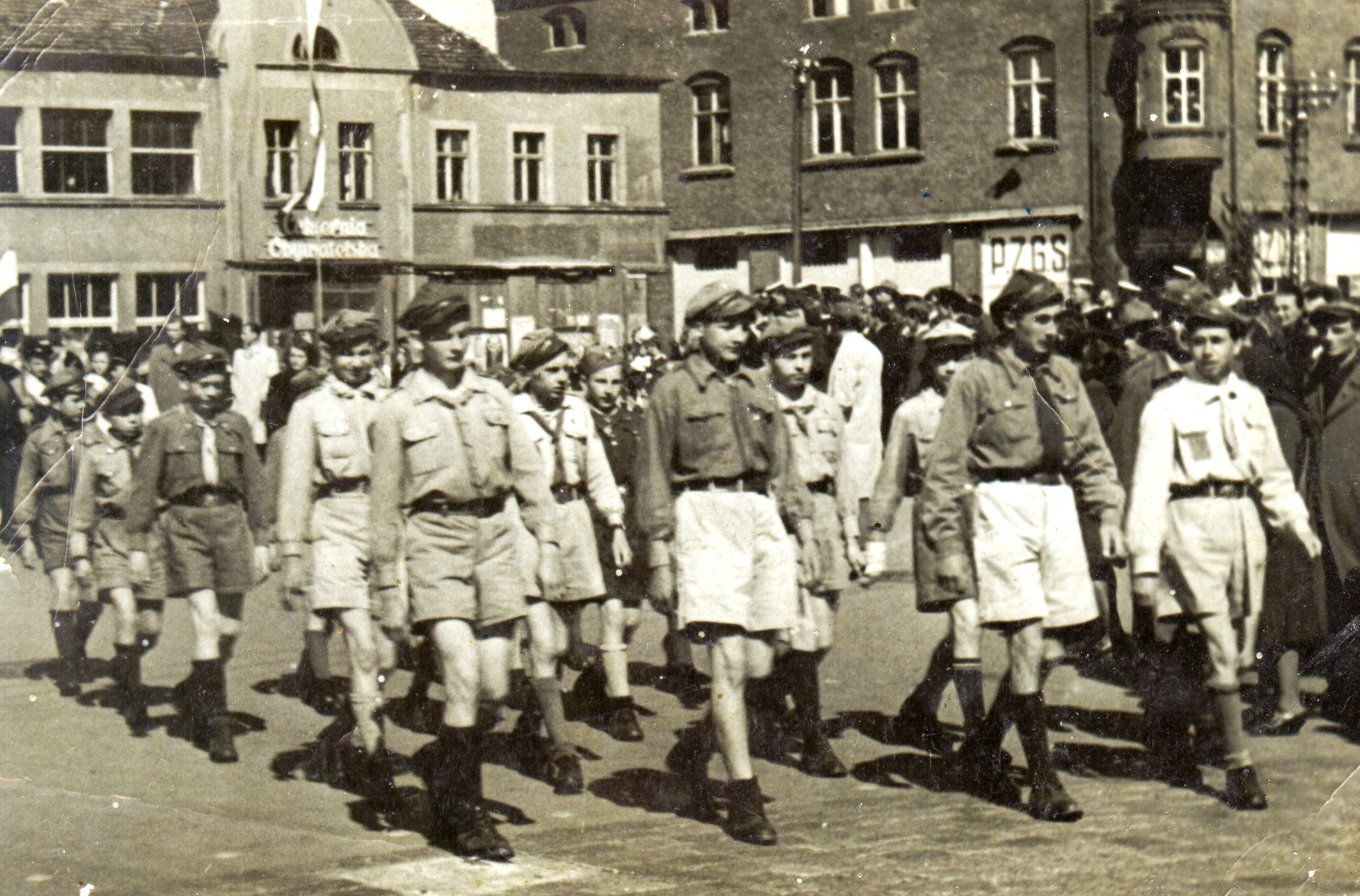 I Męska Drużyna Harcerska w 1947 podczas pochodu I majowego w Świnoujściu z niej wywodzi się dzisiejszy III Szczep Harcerski “Słowianie” ZHR