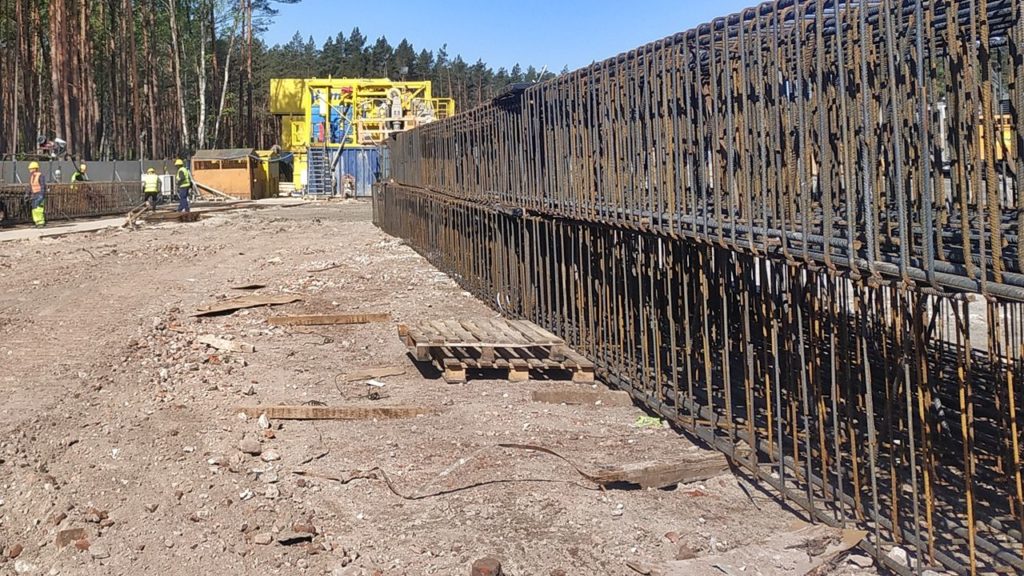 Kontynuowane są także prace przy montażu koszy zbrojeniowych oraz przy wykonywaniu ścian szczelinowych dla komory startowej maszyny drążącej tunel.
