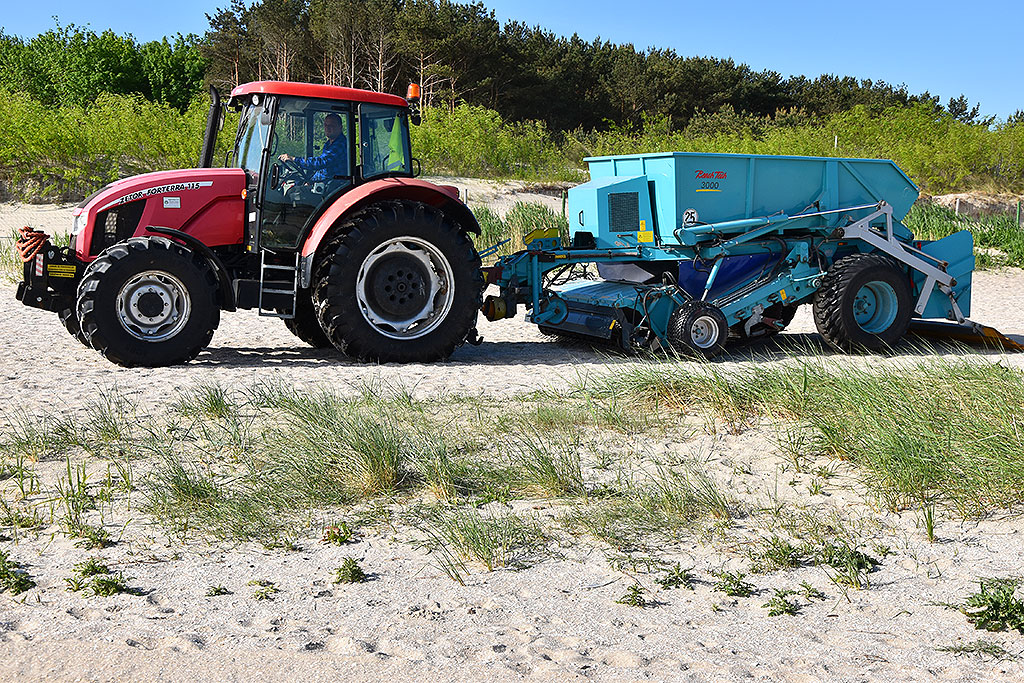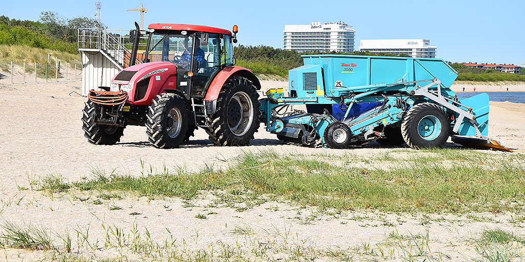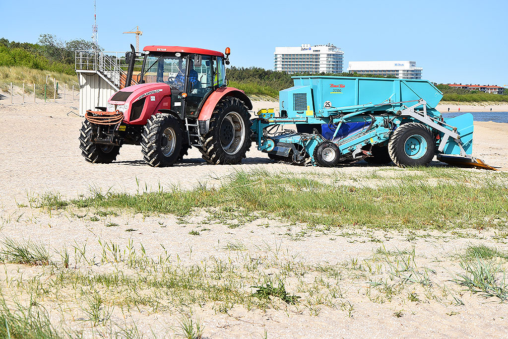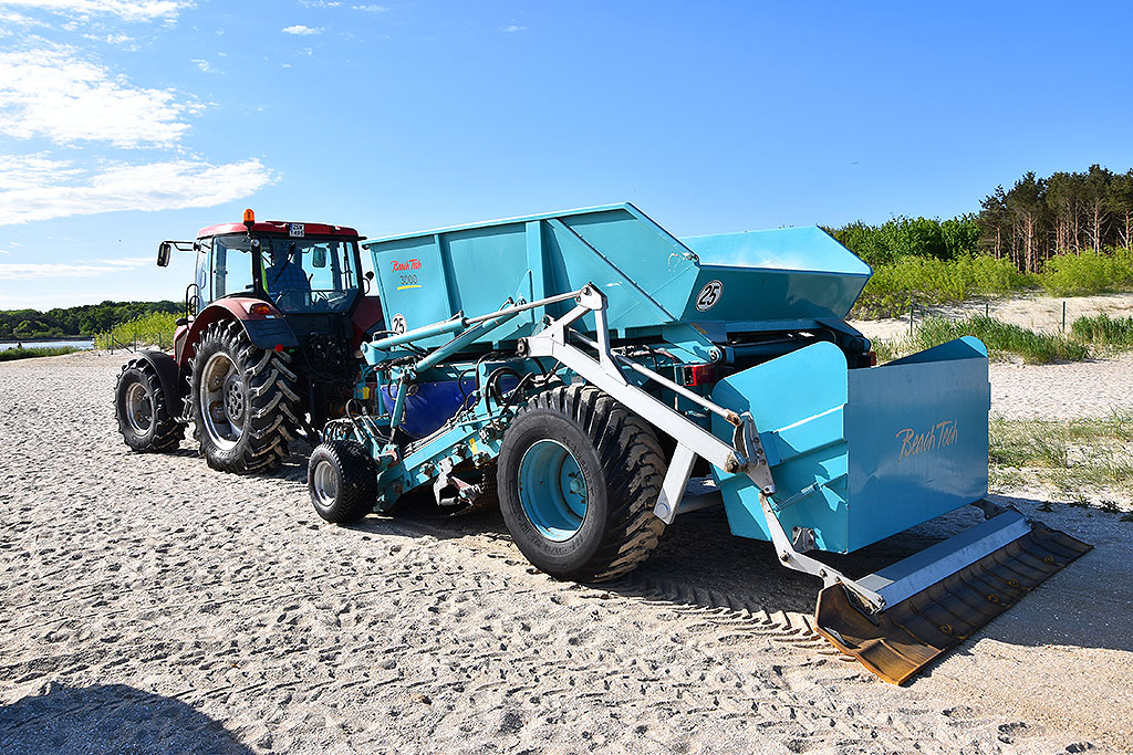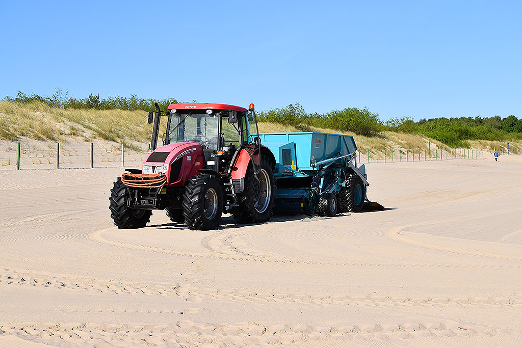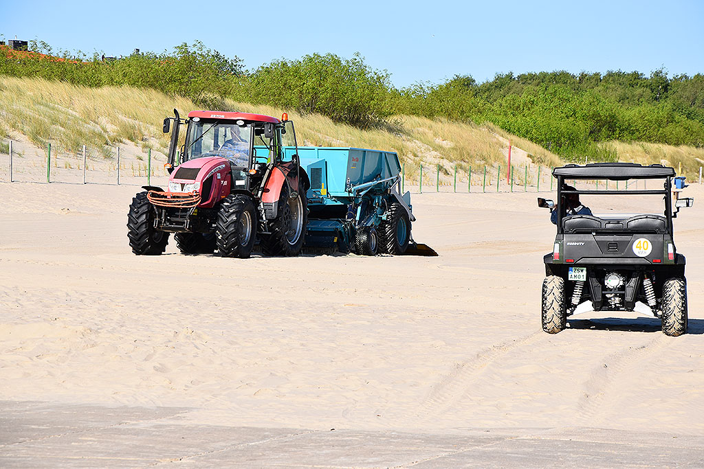 W sezonie wakacyjnym czesanie piasku odbywa się codziennie na różnych fragmentach plaży w Świnoujściu.