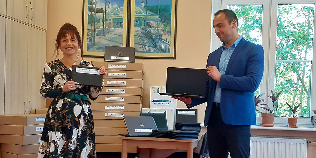 Zakupione laptopy dotarły już do Urzędu Miejskiego i w dniu dzisiejszym oficjalnie zostały przekazane przez Burmistrza Międzyzdrojów na ręce Dyrektora Szkoły Podstawowej nr 1 w Międzyzdrojach, łącznie z tabletami z pierwszego projektu Zdalna Szkoła – wsparcie Ogólnopolskiej Sieci Edukacyjnej w systemie kształcenia zdalnego. Kolejny sprzęt: iPady zostaną przekazane Dyrektora Szkoły Podstawowej nr 2 w Wapnicy w dniu 5 czerwca br.