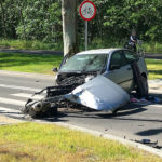 Kompletnie rozbity samochód.18-latek trafił do szpitala, bo uciekał przed niemiecką policją