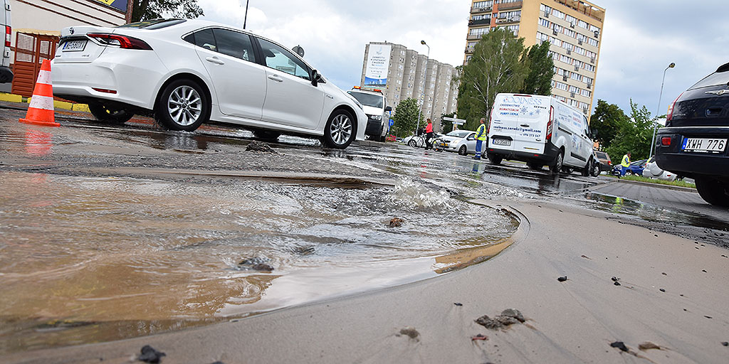 Uwaga kierowcy! Do poważnej awarii wodociągowej doszło w czwartek przed południem na ulicy Karsiborskiej w Świnoujściu. Pod jezdnią pękła rura z wodą, uszkadzając nawierzchnię. Na miejscu pracują służby ZWiK.