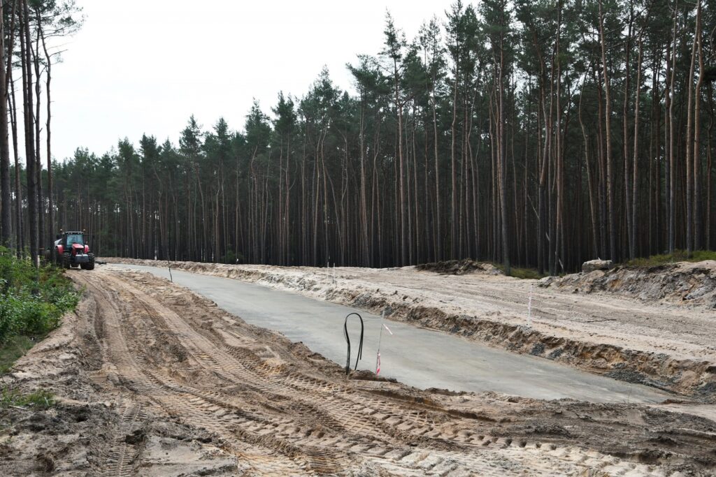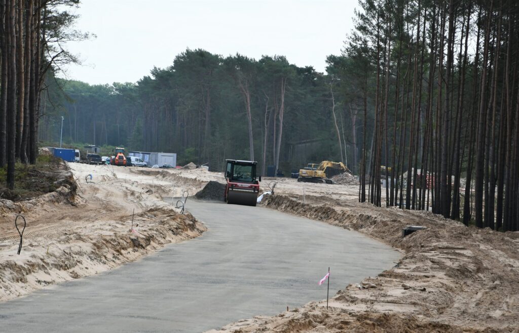 Prace rozpoczęły się w kwietniu tego roku. Obecnie trwa budowa 3,3 km sieci wodociągowej i 2,7 km kanalizacyjnej. Powstają nasypy, a także odbywa się korytowanie głównej trasy. Na kilkuset metrach została już położona pierwsza warstwa kruszywa oraz – jako dodatkowe wzmocnienie podłoża – tzw. georuszt.