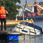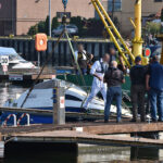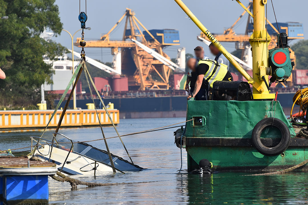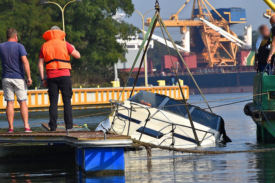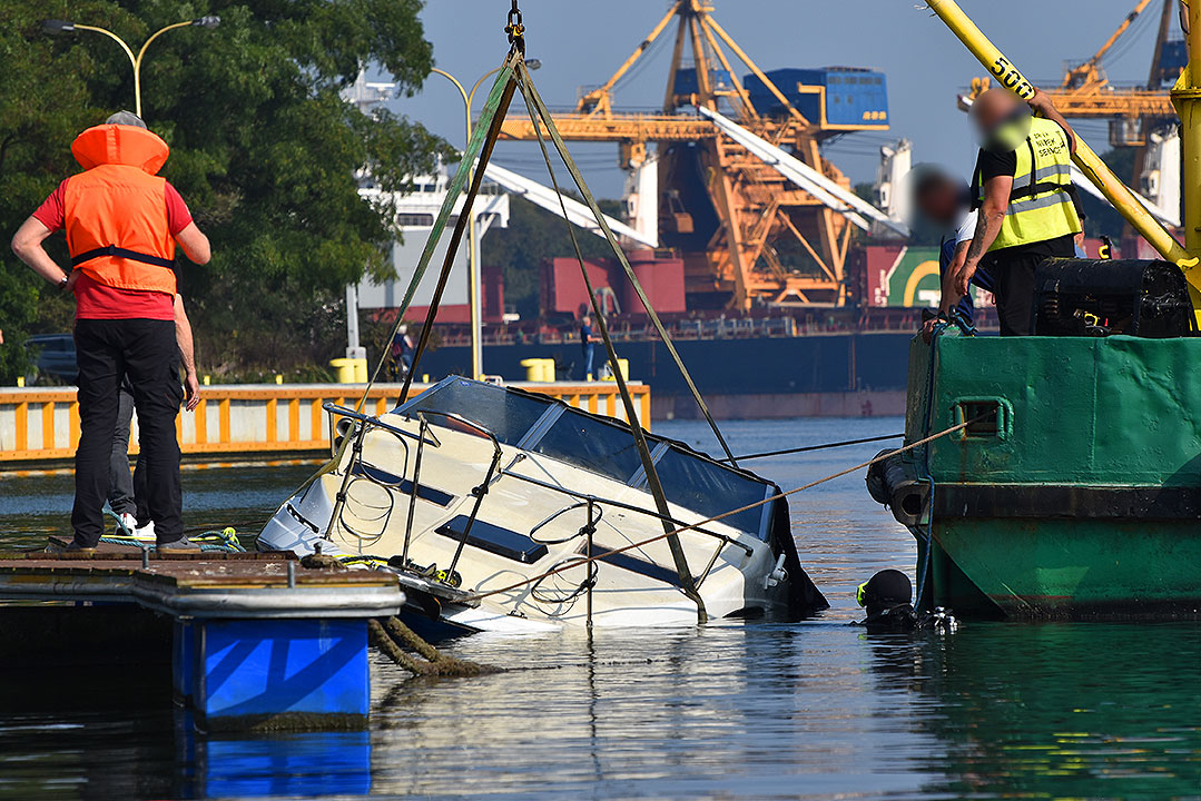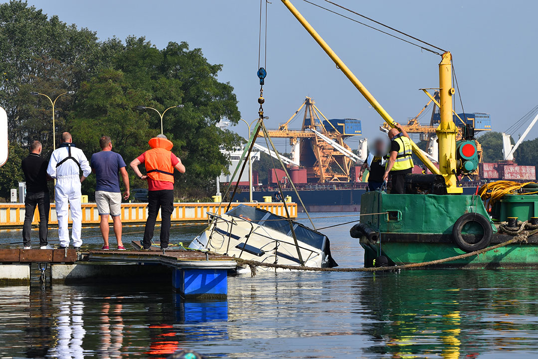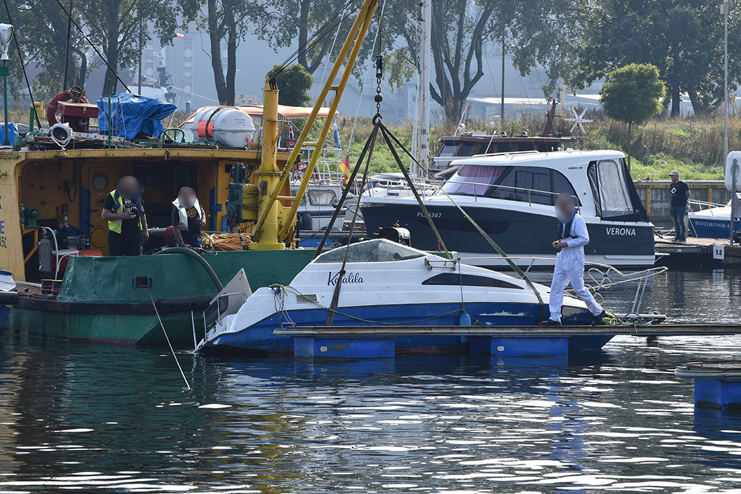 Wyłowiono jacht, który zatonął w świnoujskiej marinie
