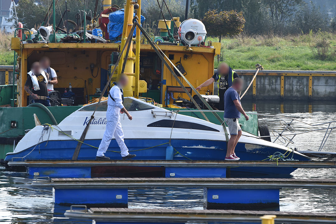 Jacht ma 5,5 metra. Z nieustalonych dotąd przyczyn jednostka poszła na dno chociaż była zacumowana. Dzisiaj nurek zszedł pod wodę, założył specjalne pasy i przy pomocy żurwia wyciągnięto jacht. W tej chwili pracują pompy, które usuwają wodę z wnętrza pokładu. Operacja podnoszenia jednostki trwała kilka godzin.