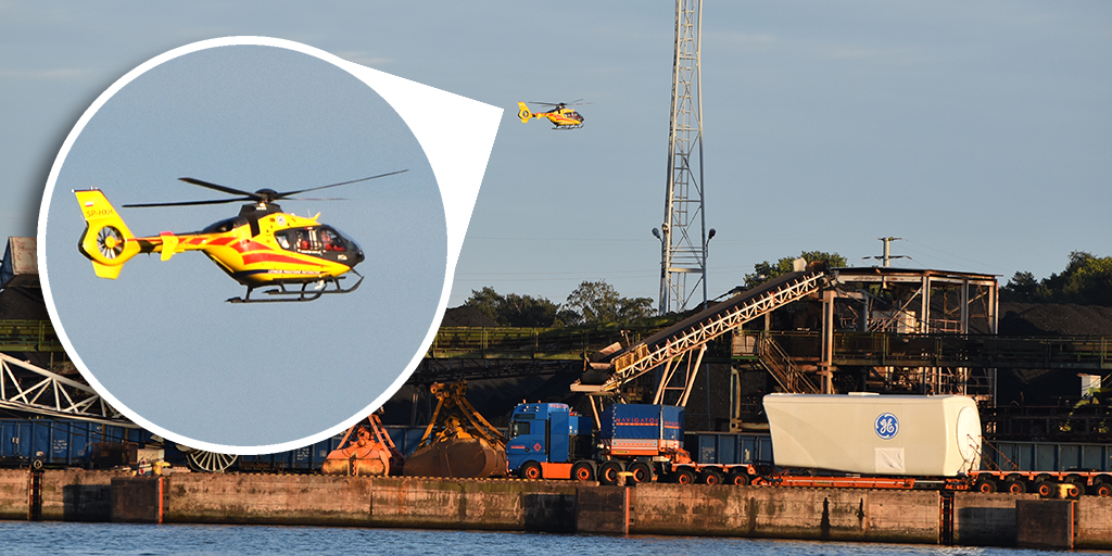 Wypadek w porcie. Pracownik przygnieciony ciężkim elementem.