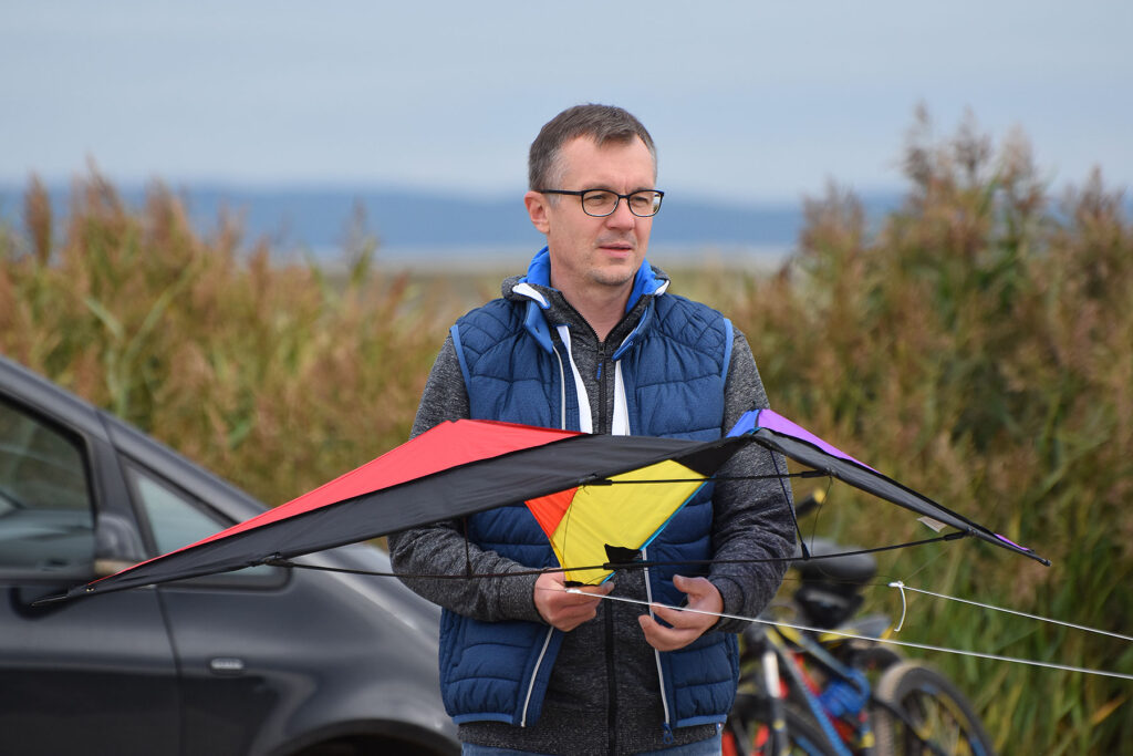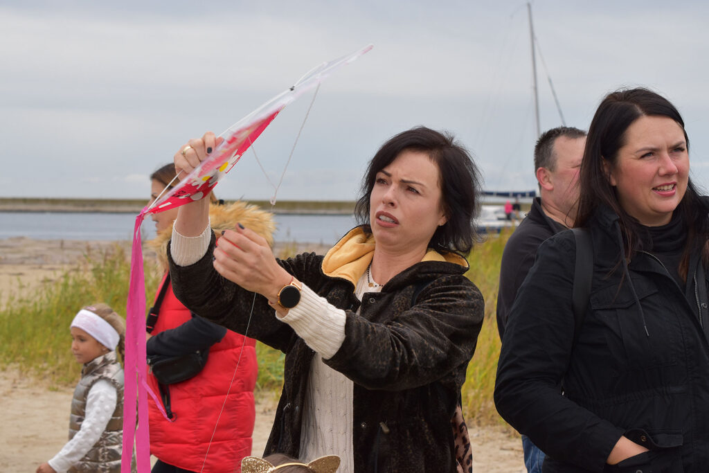Mnóstwo kolorowych latawców, jedne własnoręcznie robione, inne kupione, z długimi ogonami i te w kształcie ptaków.