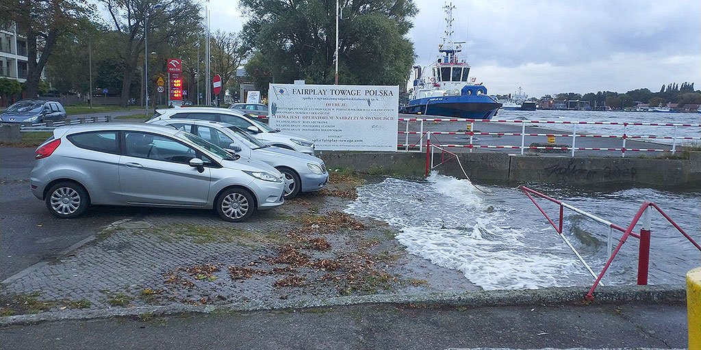 Spada poziom wody w kanale portowym. O 6 rano na wodowskazie IMGW wskazywał 574 cm. To oznacza, że woda spadła poniżej stanu alarmowego. Najwyższy stan wody był w środę o godzinie 15, wówczas napełnienie kanału portowego było na poziomie 616 cm.