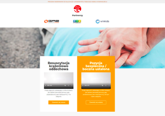 WINKIDS, które jest realizatorem tegorocznej edycji projektu Ratujemy ucząc z GAZ-SYSTEM, przy współpracy z ratownikami WOPR Świnoujście oraz Zachodniopomorską TV, przygotowali filmy szkoleniowe udostępnione seniorom na platformie multimedialnej, na której obecnie realizują swoje zajęcia edukacyjne. Treści materiałów szkoleniowych obejmują zasady udzielania pierwszej pomocy w przypadku zagrożenia życia osoby nieprzytomnej oddychającej oraz nieoddychającej z uwzględnieniem zasad bezpieczeństwa w czasach epidemii COVID-19.