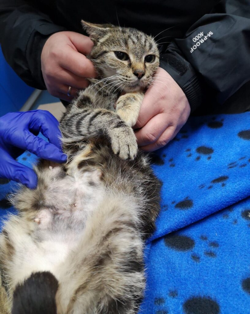 Kotka Basia trafiła do Fundacji Animals Przystań Świnoujście wraz z trzema kociakami kilkanaście dni temu. Wszystkie kotki były chore. Jednak w najgorszym stanie była Basia. Kotka miała gorączkę, kichała, zmiany w drogach oddechowych i bardzo duży brzuch bardzo niepokoiły.