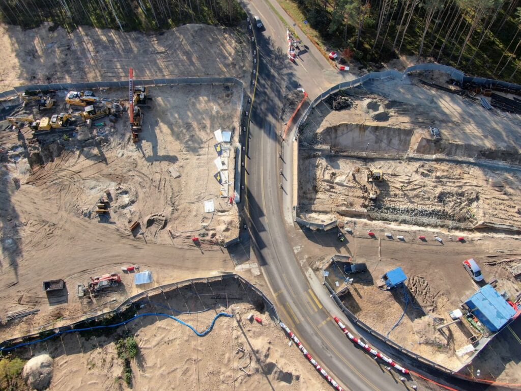 W zeszłym tygodniu kontynuowana była też przebudowa i budowa sieci wodno-kanalizacyjnej na zachód i wschód od ul. Karsiborskiej. Przebudowywano sieci teletechniczne, a także prowadzono roboty ziemne dla zbiornika retencyjnego R1. Wciąż prowadzone są też prace ziemne pod drogę główną DK 93.