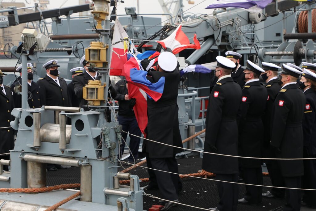 Zgodnie z ceremoniałem morskim bandery wojenne z wycofywanych okrętów i pomocniczych jednostek pływających trafiają do Muzeum Marynarki Wojennej. Po wycofaniu z eksploatacji jednostka zostanie przekazana Agencji Mienia Wojskowego.