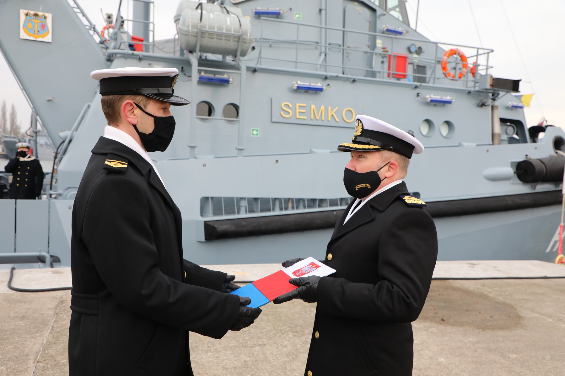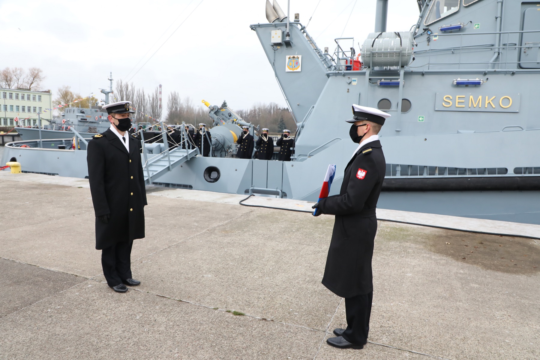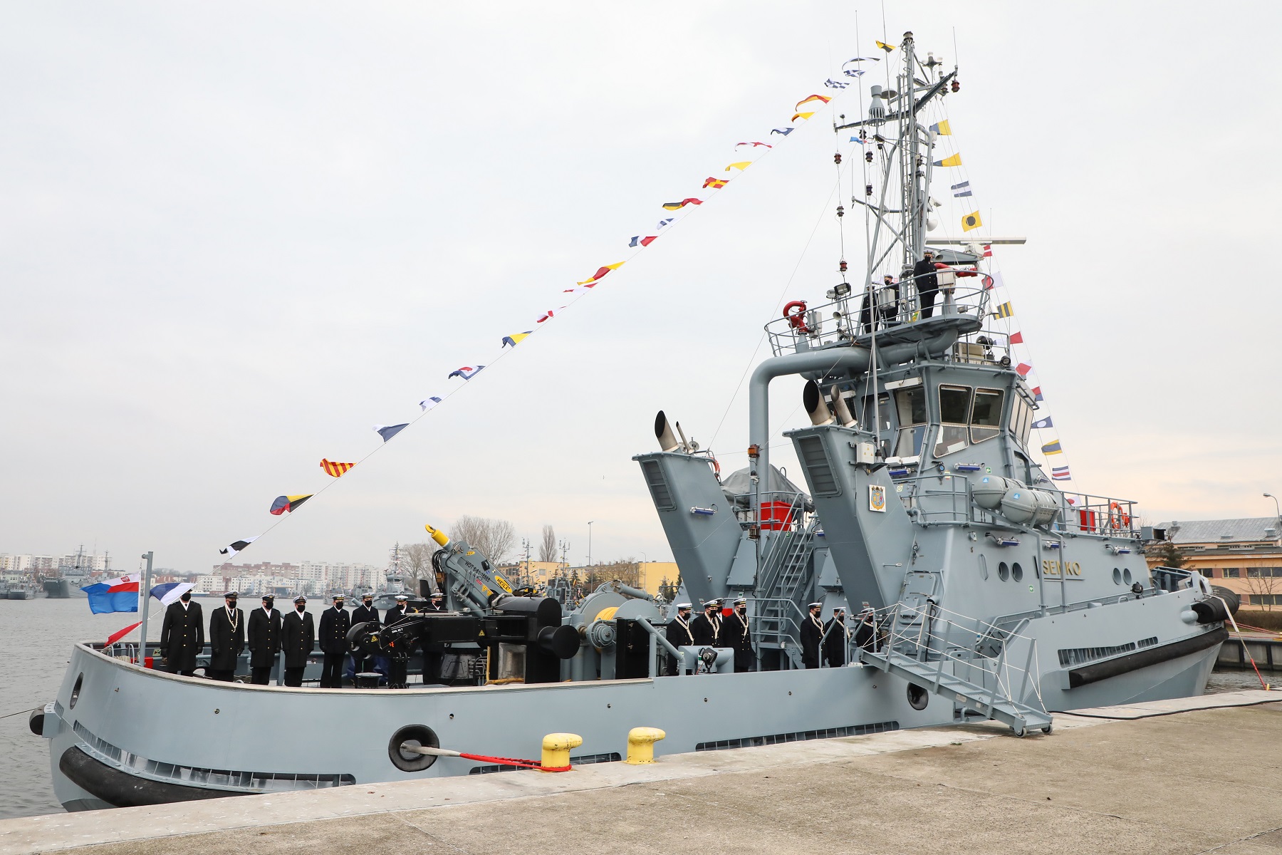 Zgodnie z rozkazem Dowódcy Generalnego Rodzajów Sił Zbrojnych w sprawie pierwszego podniesienia bandery jednostek pomocniczych Marynarki Wojennej na holowniku o numerze burtowym H-12 Semko po raz pierwszy została uroczyście podniesiona bandera. Tym samym jednostka ta została oficjalnie wcielona do sił Marynarki Wojennej. Od dzisiaj holownik „Semko” pełni służbę w 8. Flotylli Obrony Wybrzeża w składzie 12. Dywizjonu Trałowców. Uroczystość ze względu na obowiązujący stan pandemii koronawirusa miała ograniczony charakter. Obecni na uroczystości byli: dowódca 8.FOW kontradmirał Piotr Nieć, Matka Chrzestna holownika Pani Marzena Gańcza, przedstawiciele Stoczni RSB oraz załoga i kadra 12. Dywizjonu Trałowców.