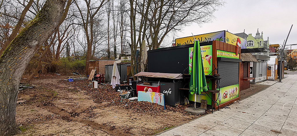 Zmysł estetyki niektórych przedsiębiorców zatrzymał się na latach 90, gdy na targowisku sprzedawano skarpetki i majtki na łóżkach polowych. Tak w Świnoujściu wygląda fragment zmodernizowanej promenady, a raczej to co przy niej stoi.