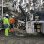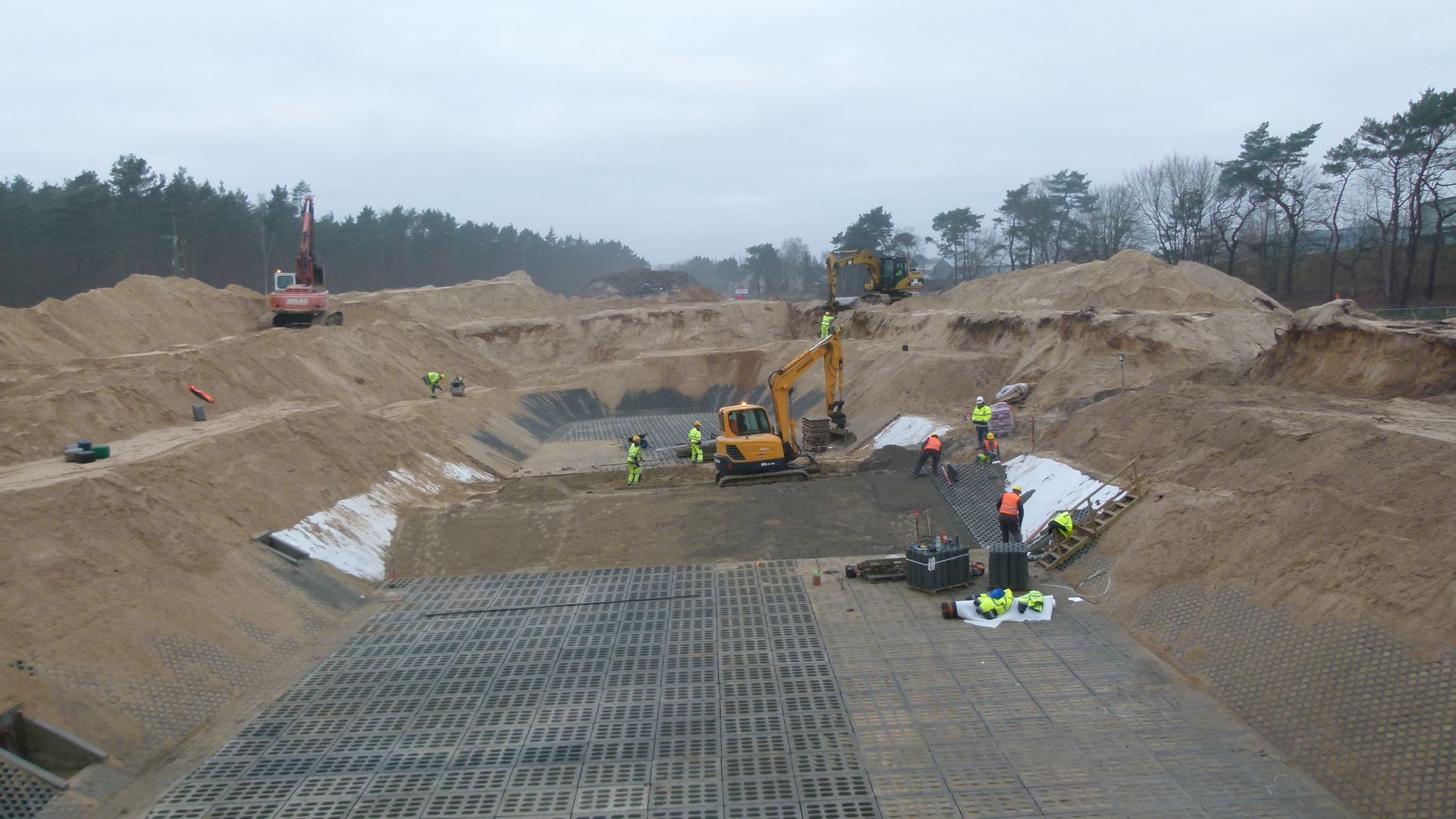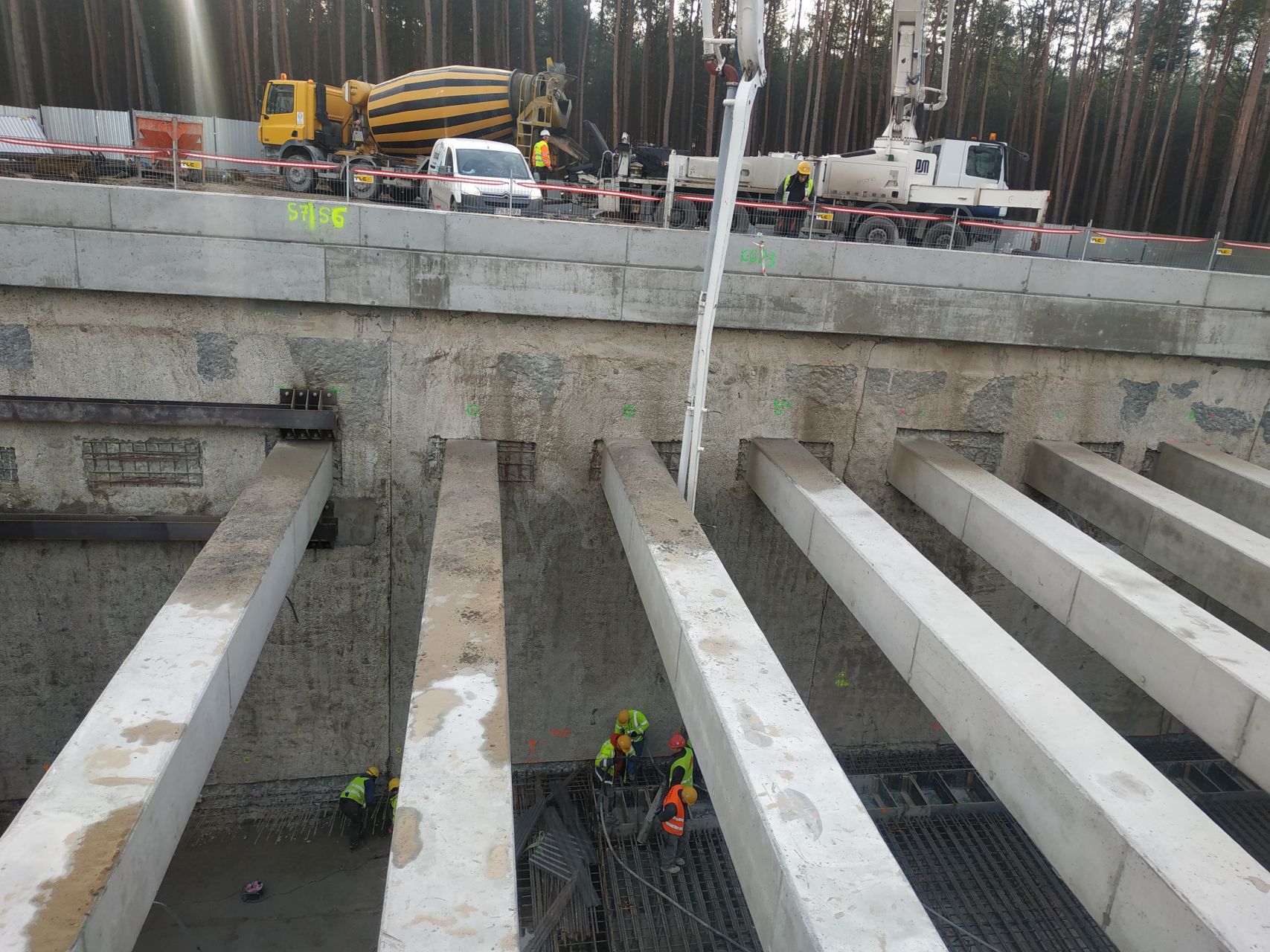 W zakładzie prefabrykacji odbywa się produkcja segmentów obudowy tunelu, które są przewożone i składowane na placu magazynowym. Trwają również prace ziemne na placu składowym dla segmentów obudowy przy ul. Portowej.