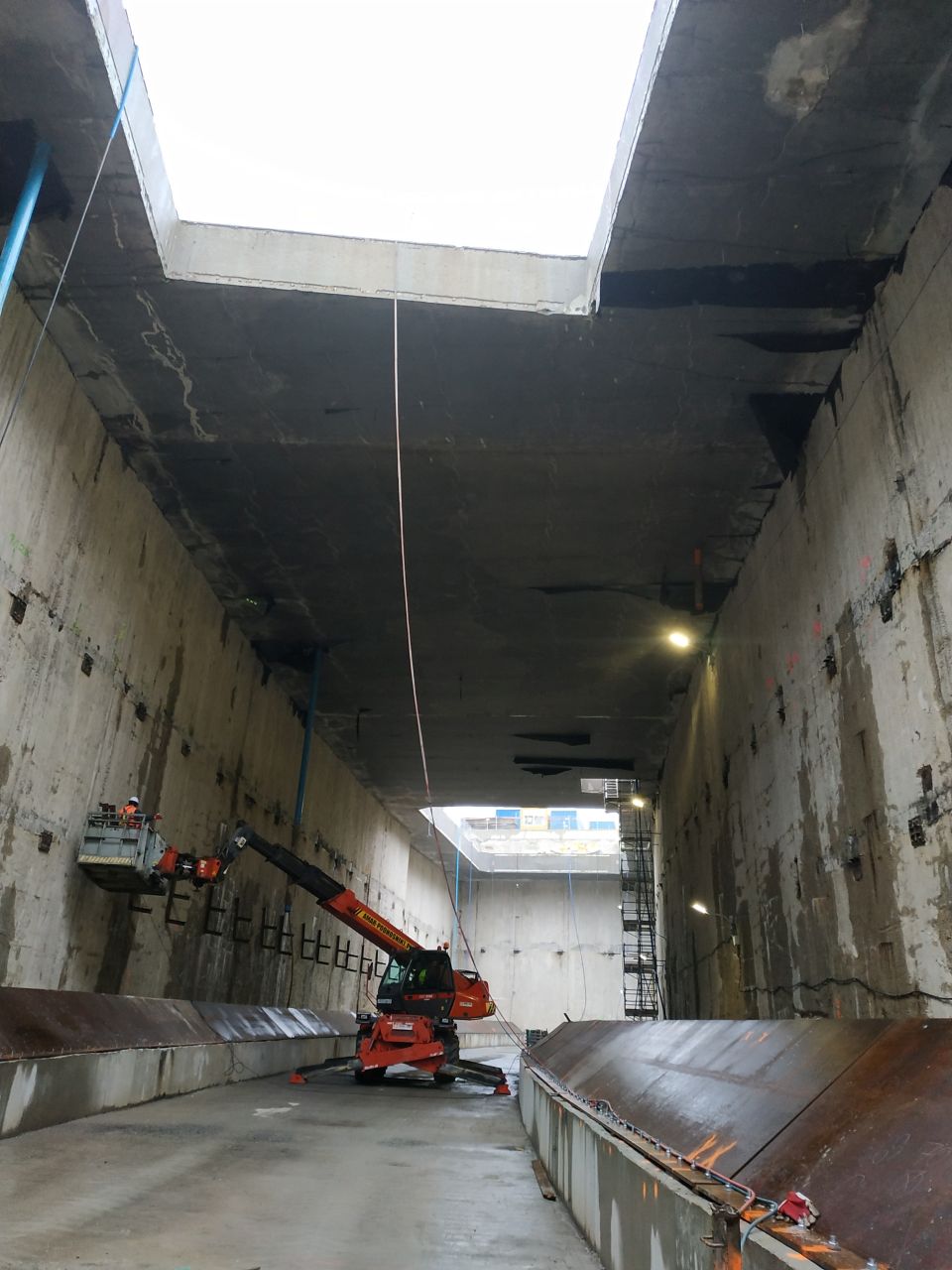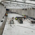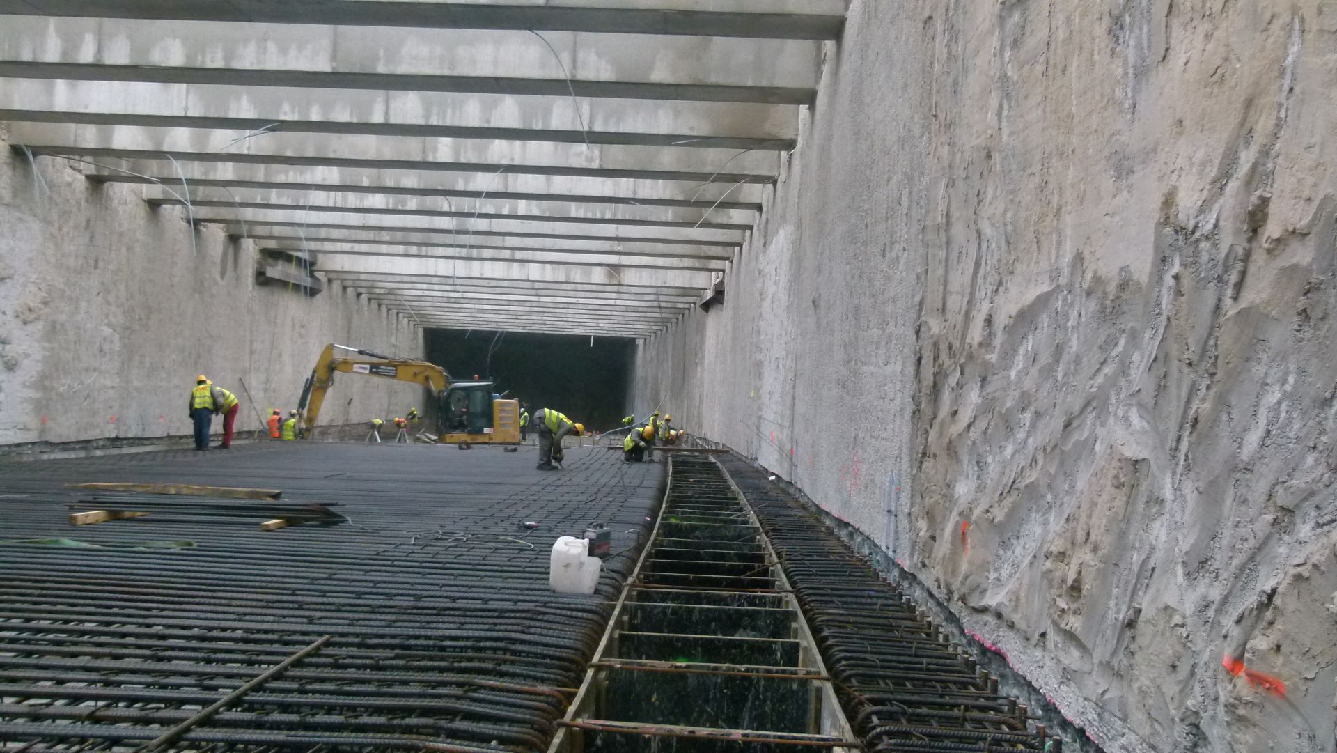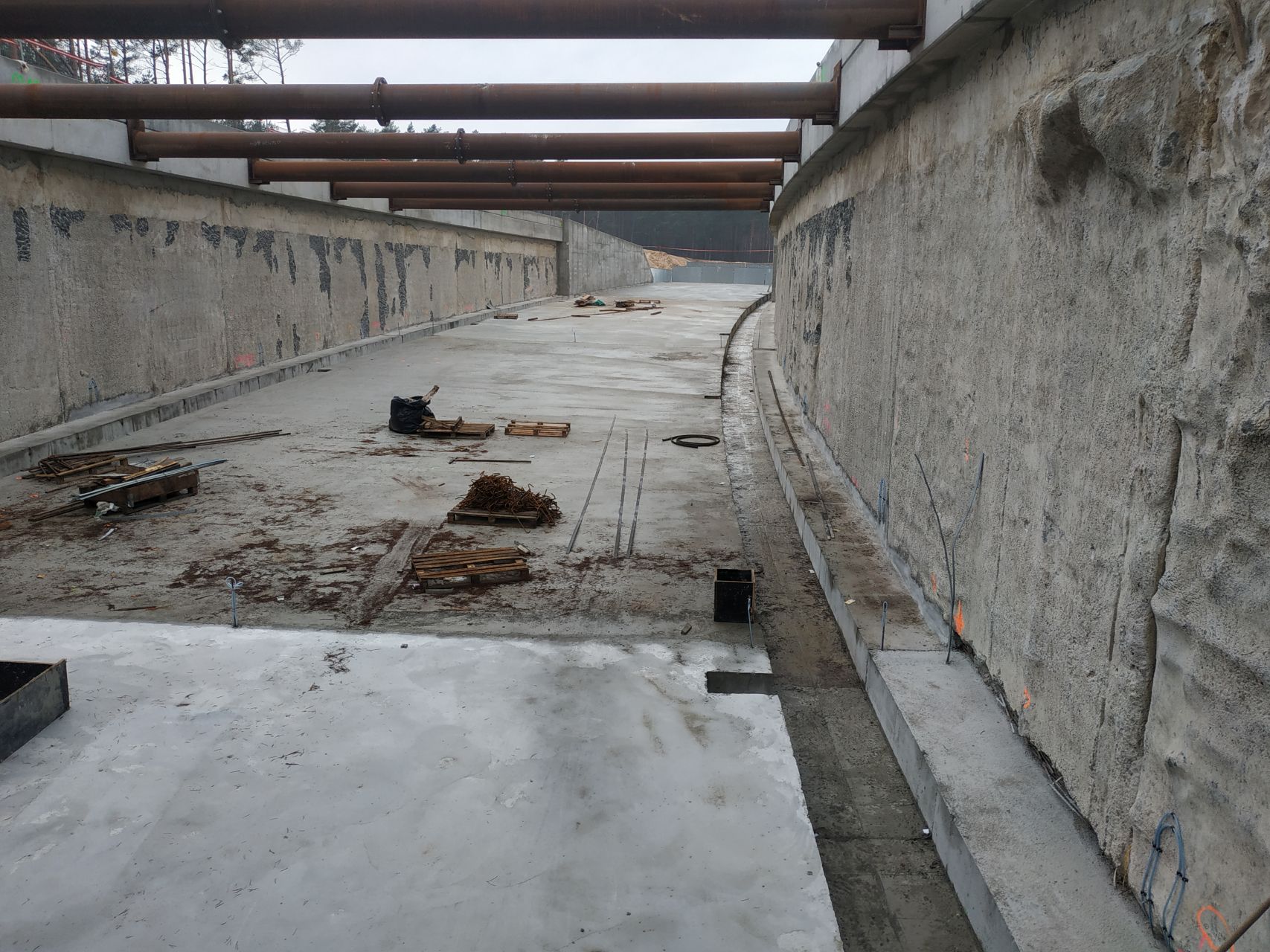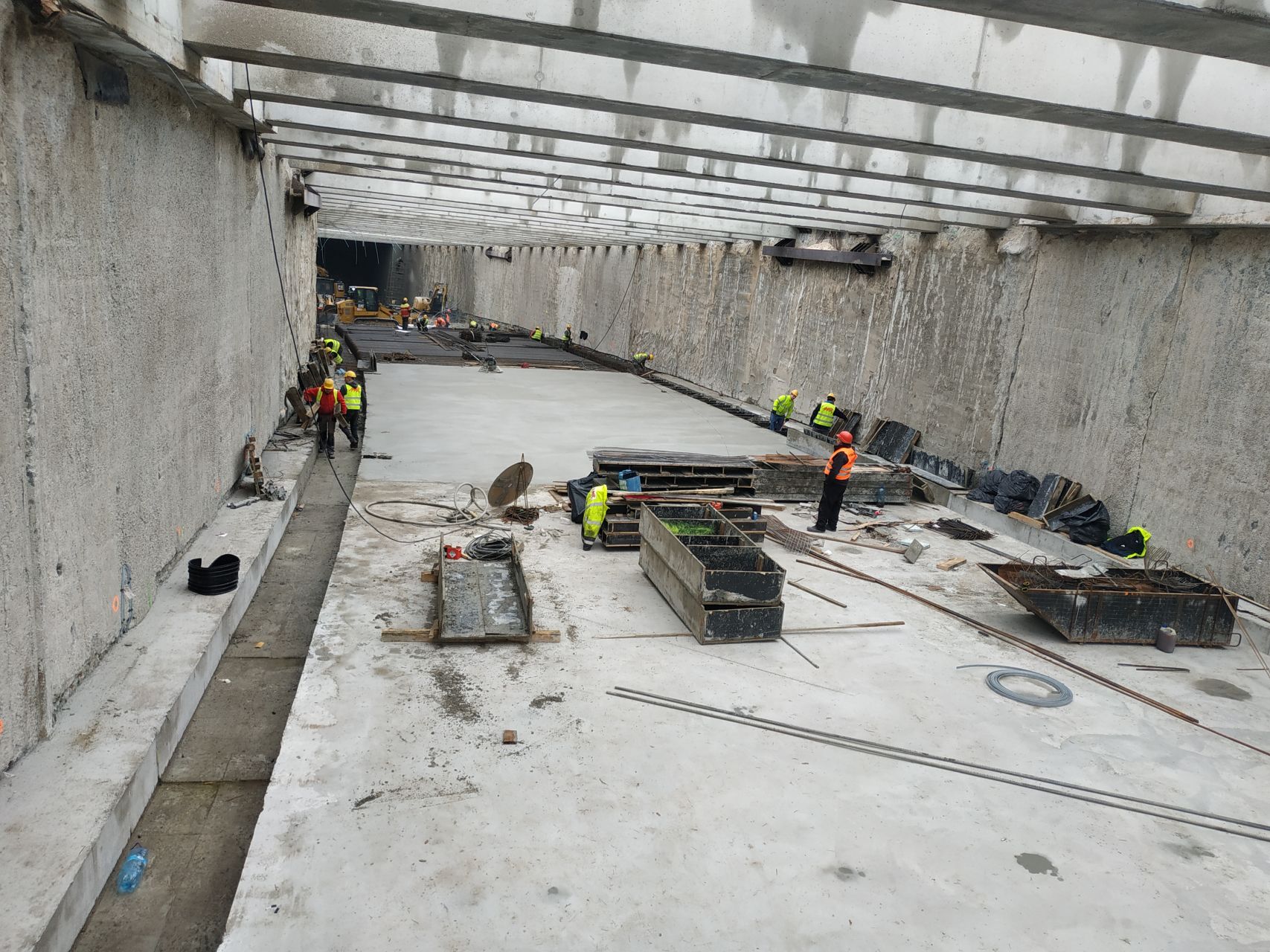 Teren budowy na bieżąco organizowany jest na potrzeby składania maszyny TBM i doporowadzenia tam odpowiednich instalacji. Trwają też prace porządkowe i konserwacyjne. Odbywa się wywóz stalowych rozpór tymczasowych, które nie będą tam już potrzebne. Trwają przygotowanie trafostacji dla STP i TBM do podania zasilania.