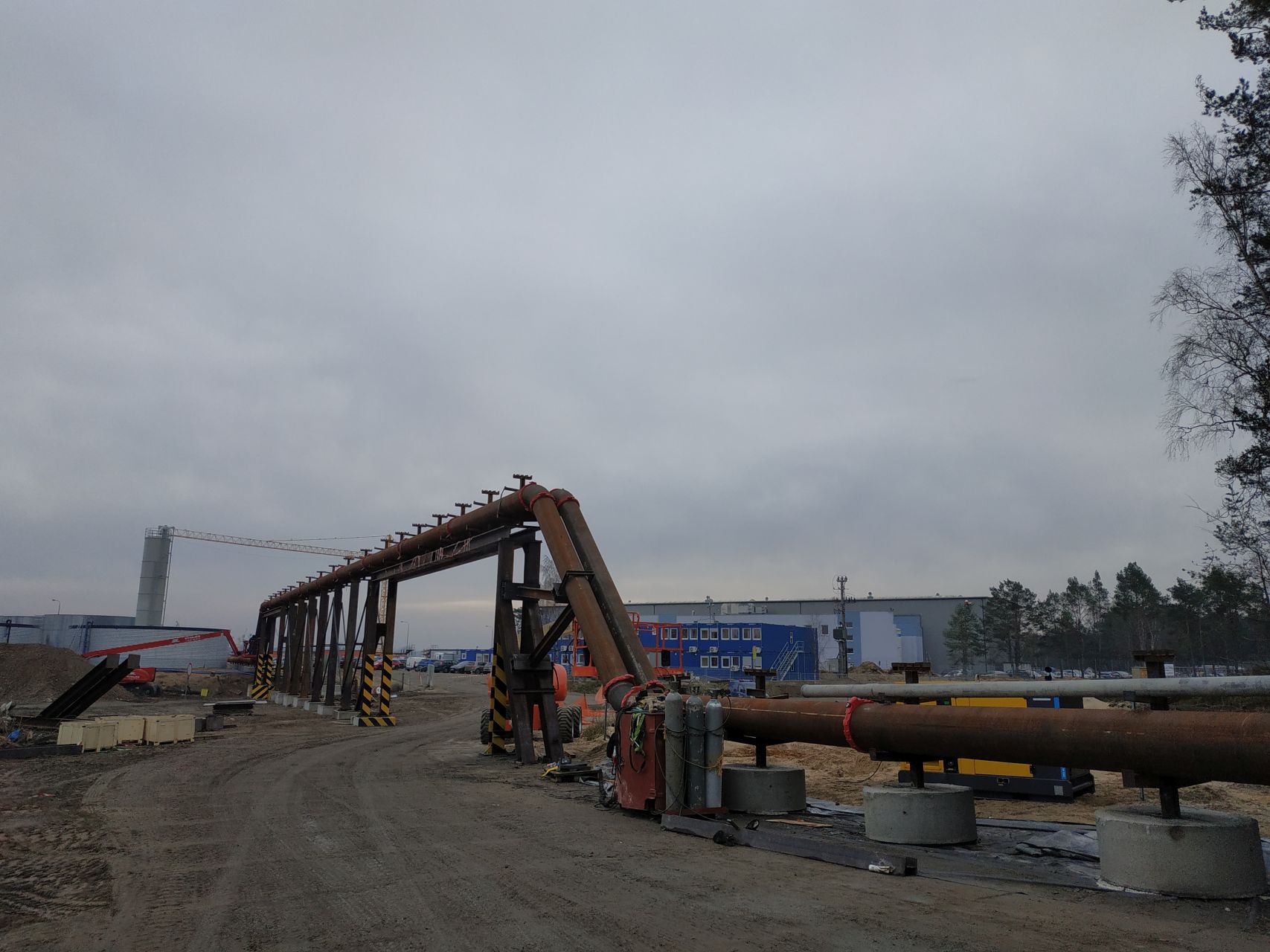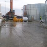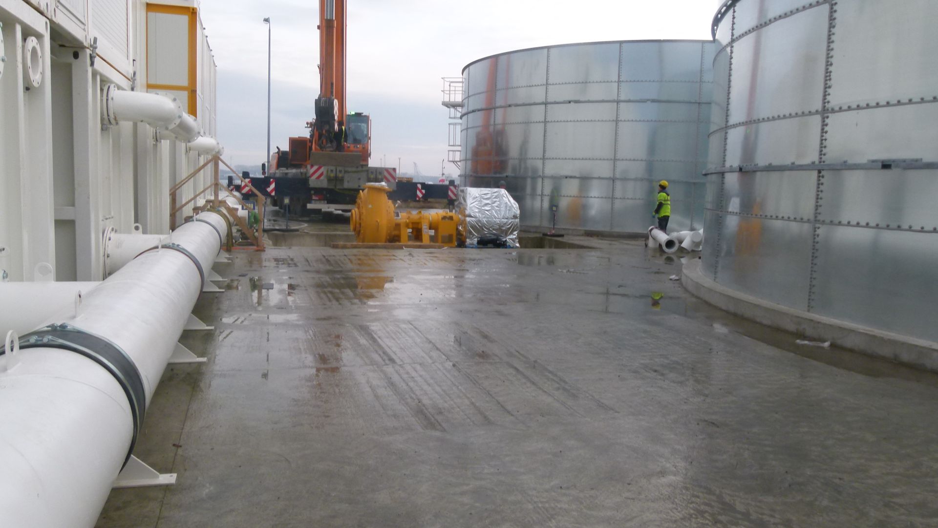 W stacji STP (Slurry Treatment Plant), gdzie płuczka wiertnicza będzie oczyszczana i oddzielana od urobku, kontynuowana jest budowa elementów kontenerowych STP. Prowadzony jest też montaż rurociągów płuczkowych i wykonywanie podpór.