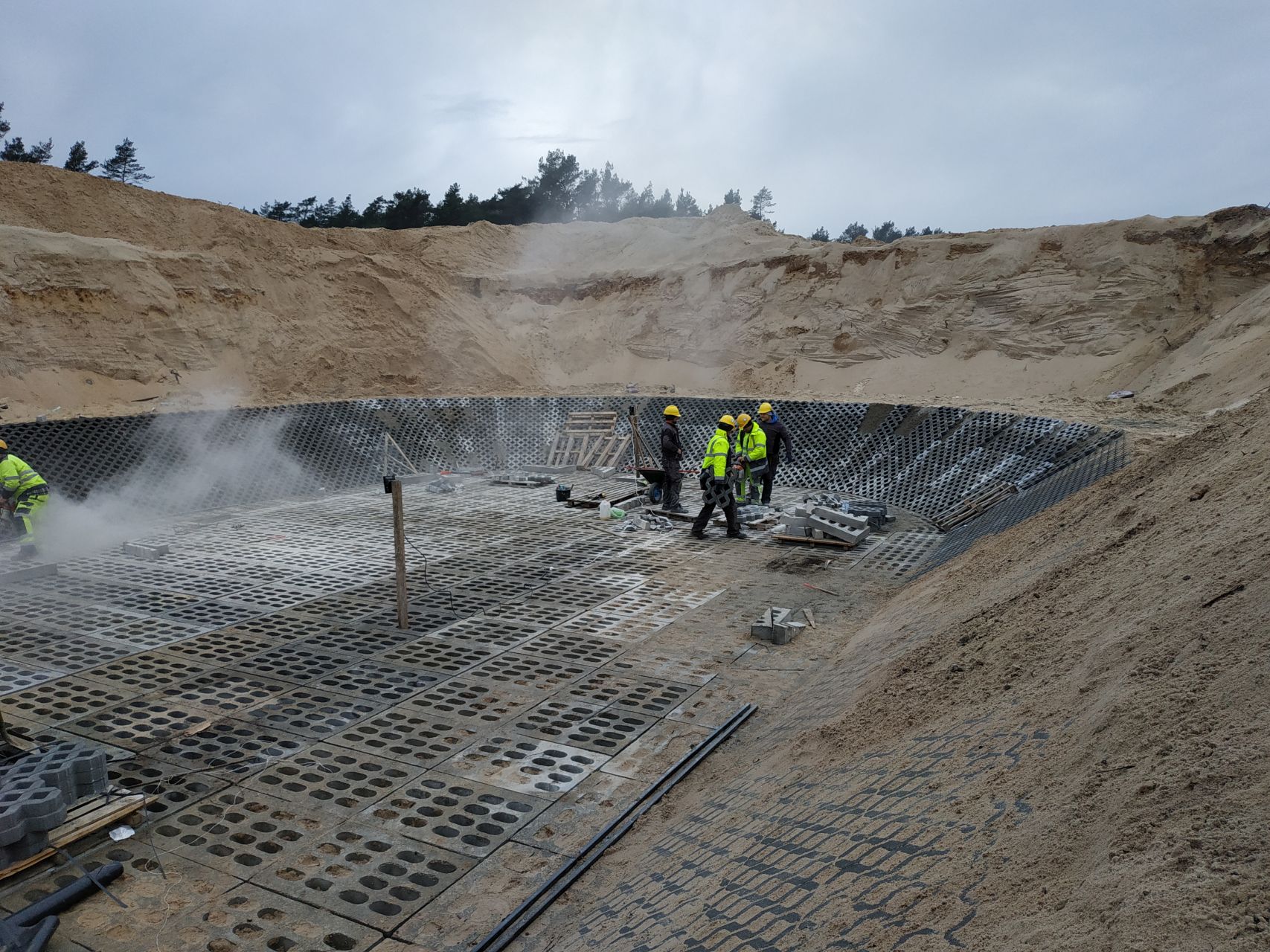 Z kolei na wyspie Wolin zakończono wykonywanie kolumn jet – grouting dla bloku serwisowego. Kontynuowane jest wykonywanie wieńców ścian szczelinowych komory odbiorczej TBM. Trwa głębienie i betonowanie ścian szczelinowych i wykonywanie przesłony jet-grouting dla tunelu odkrywkowego, a także dla rampy – segmenty R16 – R4. Na odcinku R1 – R3 rampy prowadzone są roboty żelbetowe.