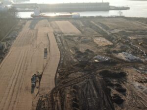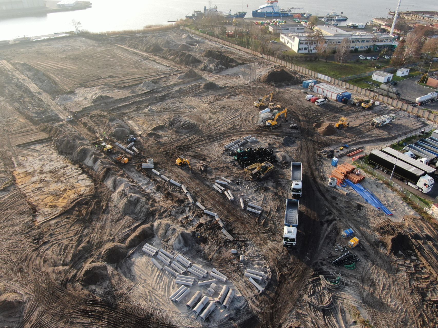 Tymczasem po drugiej stronie Świny, na wyspie Wolin, kontynuowane jest odwadnianie komory odbiorczej TBM oraz wykonywane są piezometry. Odwadniane są też wykopy na odcinku rampy (wykonywanej metodą odkrywkową) i tunelu (wykonywanego metodą stropową) – dotyczy to segmentów R1 – R16. Trwają prace przy organizacji placu budowy. Odbywa się grodzenie i przygotowanie podłoża pod dodatkowe place składowe na terenie budowy.