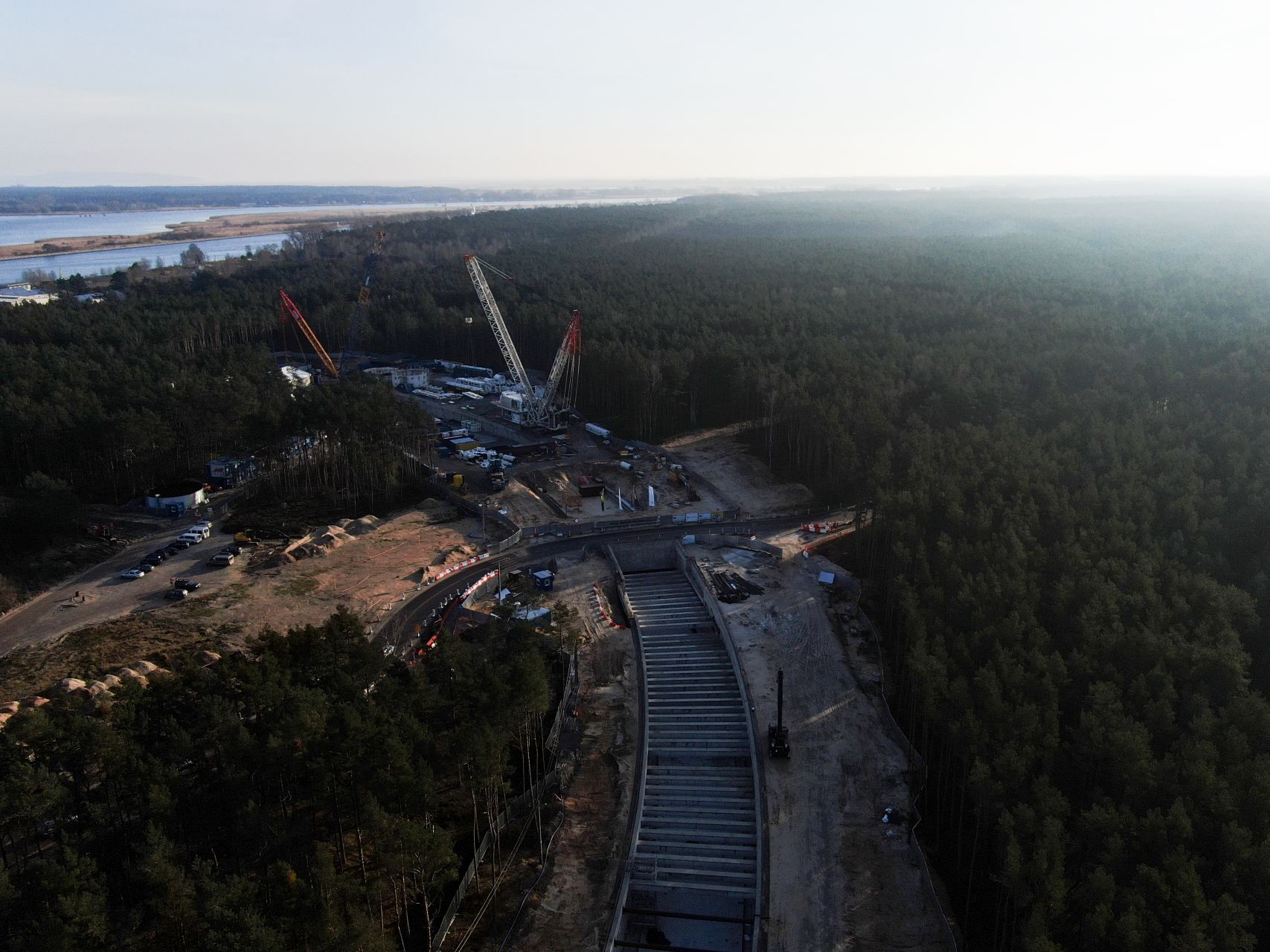 Tydzień 28 XII 2020 – 03 I 2021. Na wyspie Uznam trwają prace, by maszyna TBM mogła rozpocząć drążenie tunelu pod Świną. Początek drążenia zaplanowano na wiosnę tego roku. W ubiegłym tygodniu kontynuowany był montaż komponentów maszyny TBM. Odbywało się to zarówno na powierzchni, tuż przy komorze startowej, jak i w jej wnętrzu. Jednocześnie prowadzone były prace przygotowujące samą komorę.