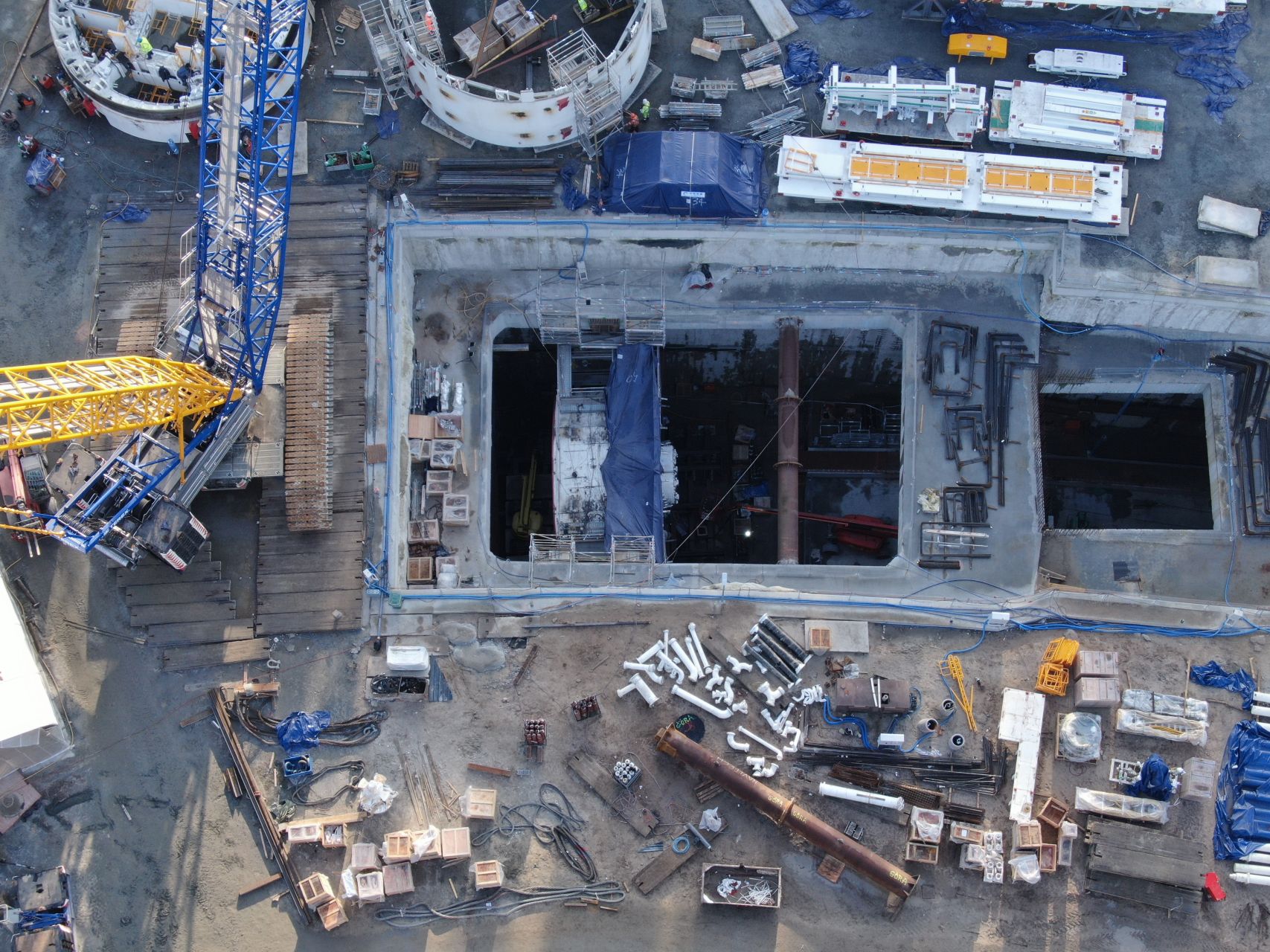 Kontynuowany jest montaż zakładu STP (Slurry Treatment Plant), gdzie płuczka wiertnicza (użyta w trakcie drążenia tunelu) będzie oczyszczana i oddzielana od urobku. Obecnie trwa budowa oświetlenia terenu zakładu STP.