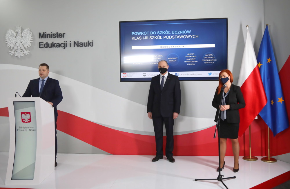 Zaznaczył, że „to wszystko doprowadziło nas do rekomendacji, które zostaną przekazane dyrektorom szkół na wypadek, gdyby rzeczywiście decyzja w przyszłym tygodniu mogła być pozytywna co do powrotu klas I-III do stacjonarnej nauki w szkołach”.