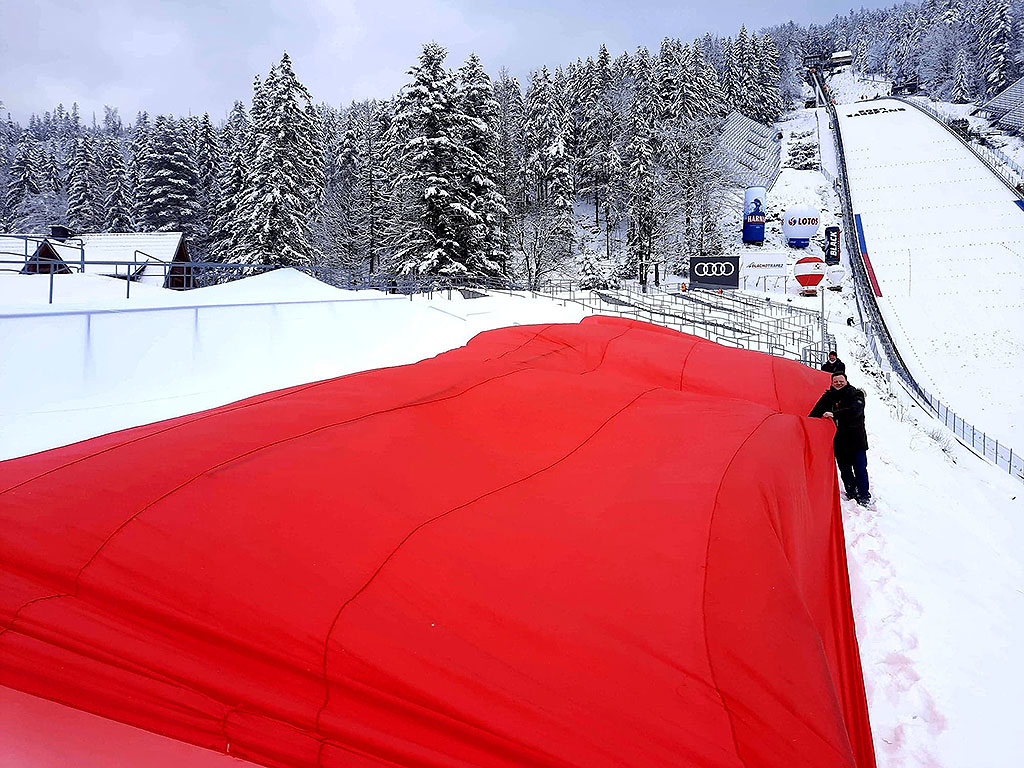 Wraz z mieszkańcami Świnoujścia do Zakopanego pojechał baner z herbem Świnoujścia oraz gigantyczna biało-czerwona flaga; ta sama, którą podczas Święta Flagi Narodowej alpiniści zawiesili na szczycie naszej latarni morskiej. Kolos praktycznie przesłonił całe trybuny!