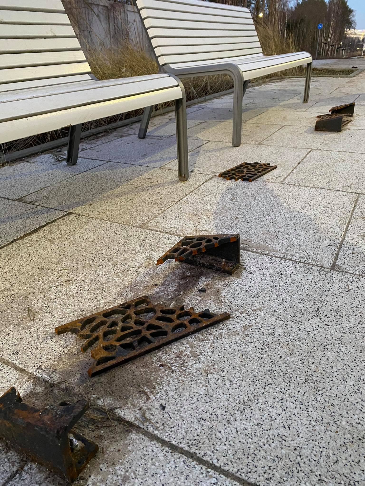 Podnóżki na promenadzie zniszczone przez wandali