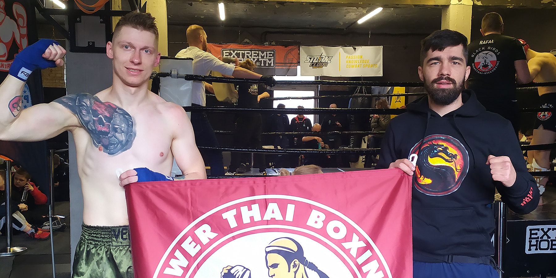 Nasz zawodnik Mateusz Bogatko (Sawer Thai Boxing Świnoujście) w kategorii wagowej -75kg zwyciężył na punkty z Mateuszem Szarubko z Maku Gym Muay Thai.