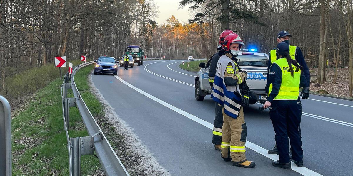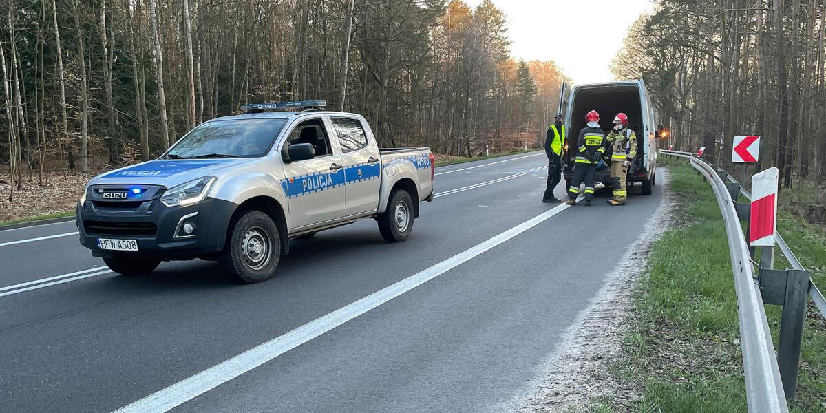 Mężczyzna po zderzeniu uciekł do lasu. Policjanci przeczesują las w poszukiwaniu sprawcy.