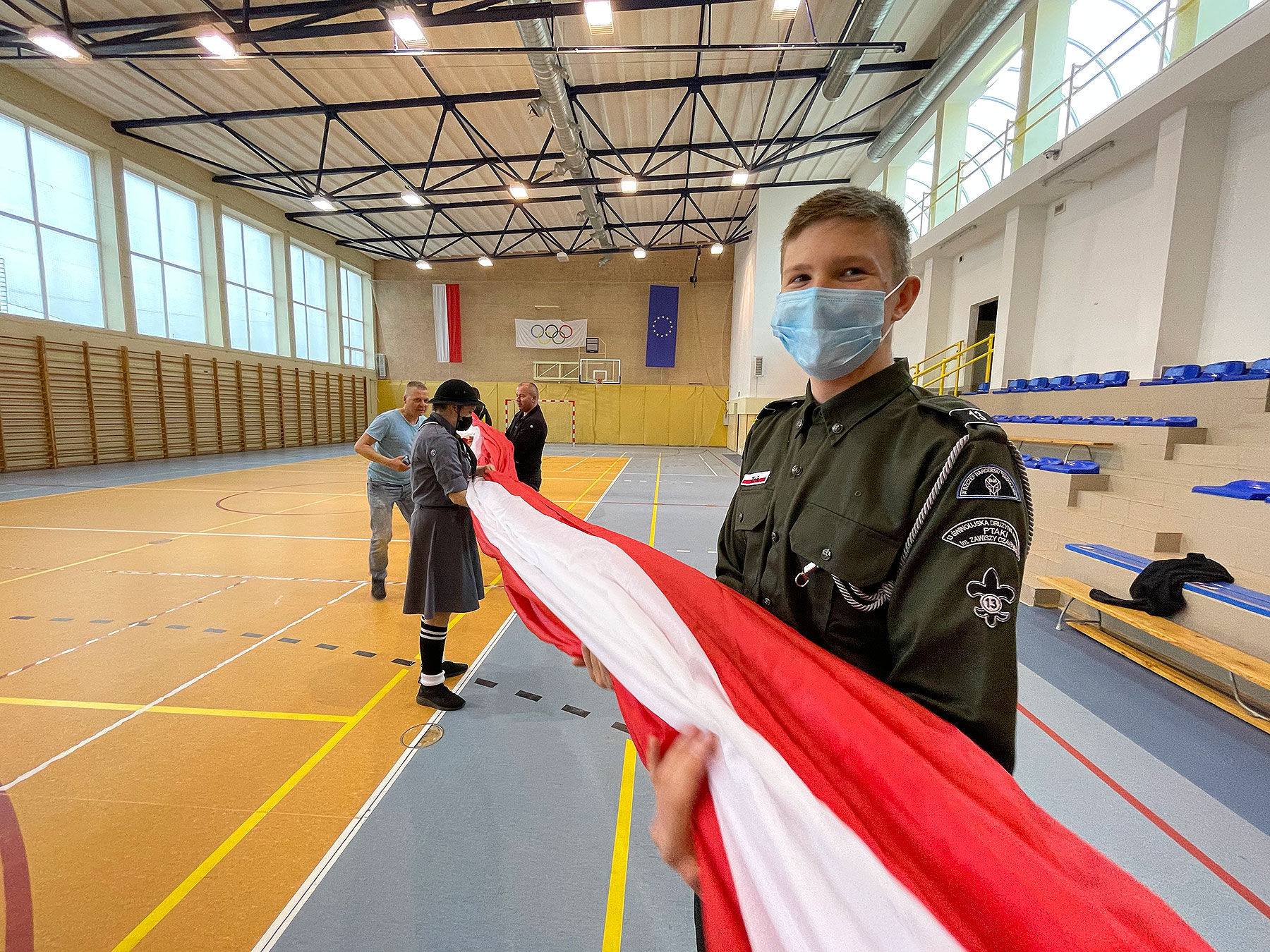 Ze względu na powierzchnię flagi, złożono ją na sali sportowej Szkoły Podstawowej nr 1 przy ul. Witosa.