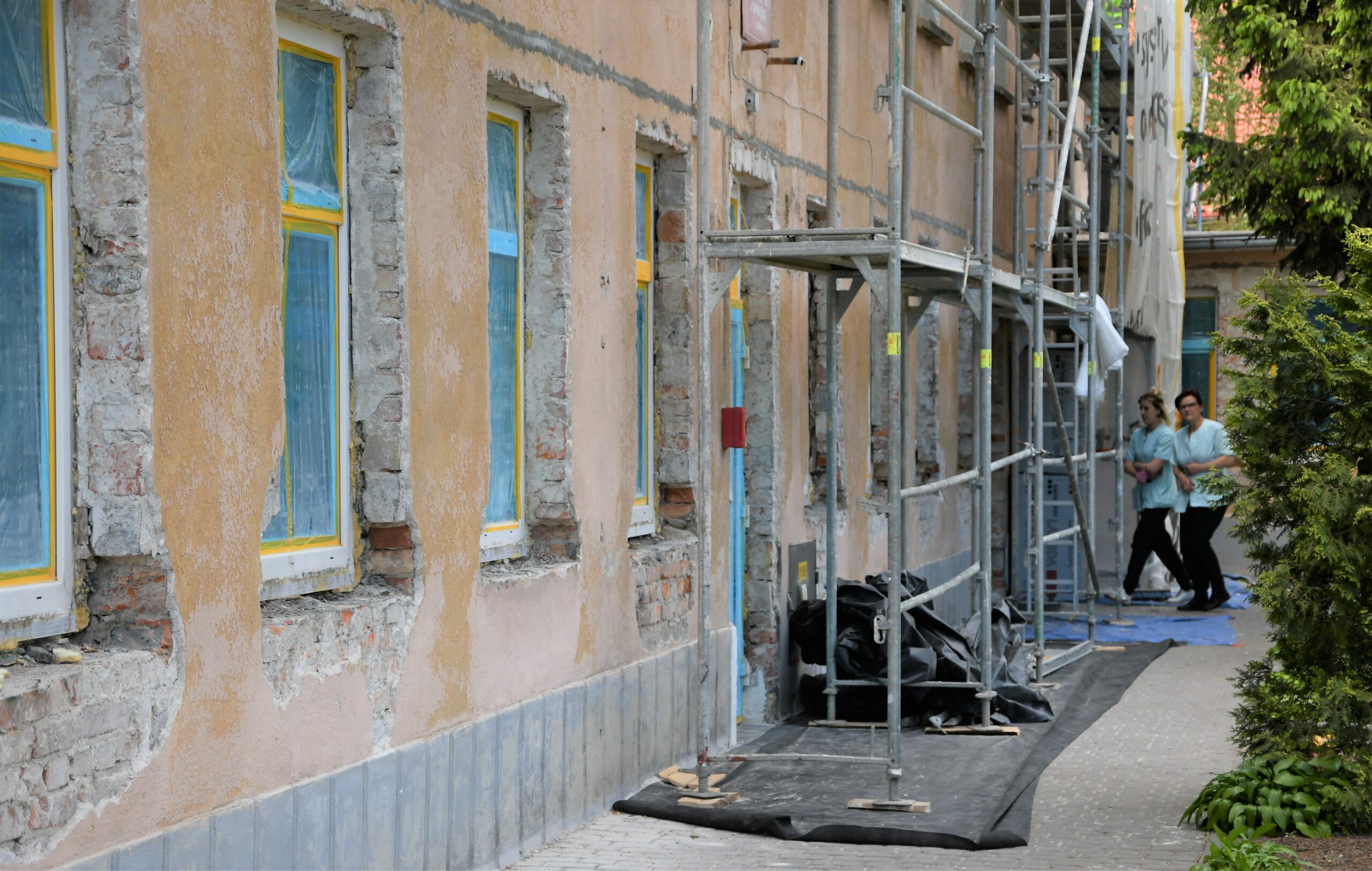 Przy ulicy Sosnowej trwa termomodernizacja Przedszkola Miejskiego nr 9 „Fantazja”. Wykonawca zaczął prace od skuwania odparzonych (luźnych) tynków. Potem będzie kładł tynk wyrównawczy. Termomodernizacja to nie jedyna inwestycja w tym przedszkolu.
