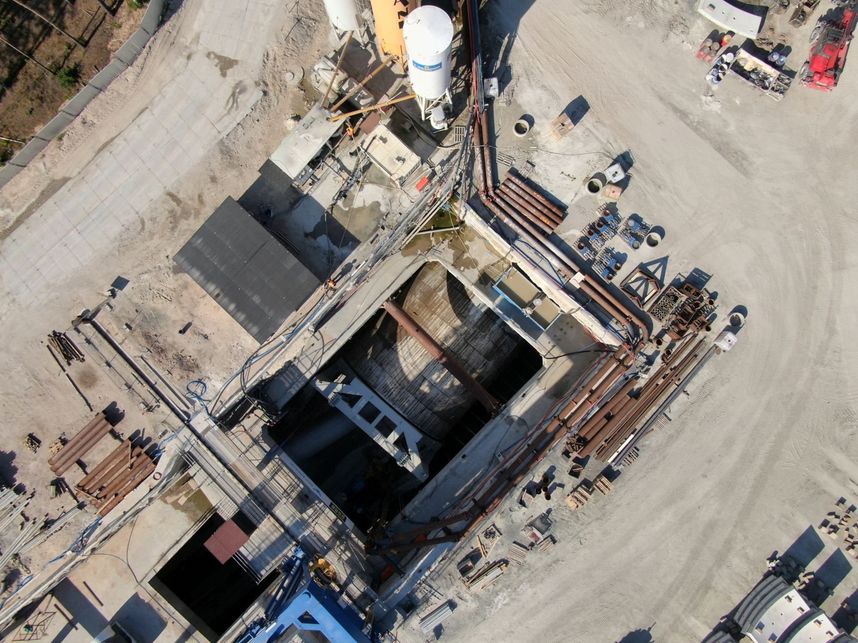 Po stronie wyspy Uznam w komorze startowej trwają prace przy stropie pośrednim: wiercenie otworów, wklejanie prętów i bruzdowanie ścian szczelinowych pod wsporniki stropu.