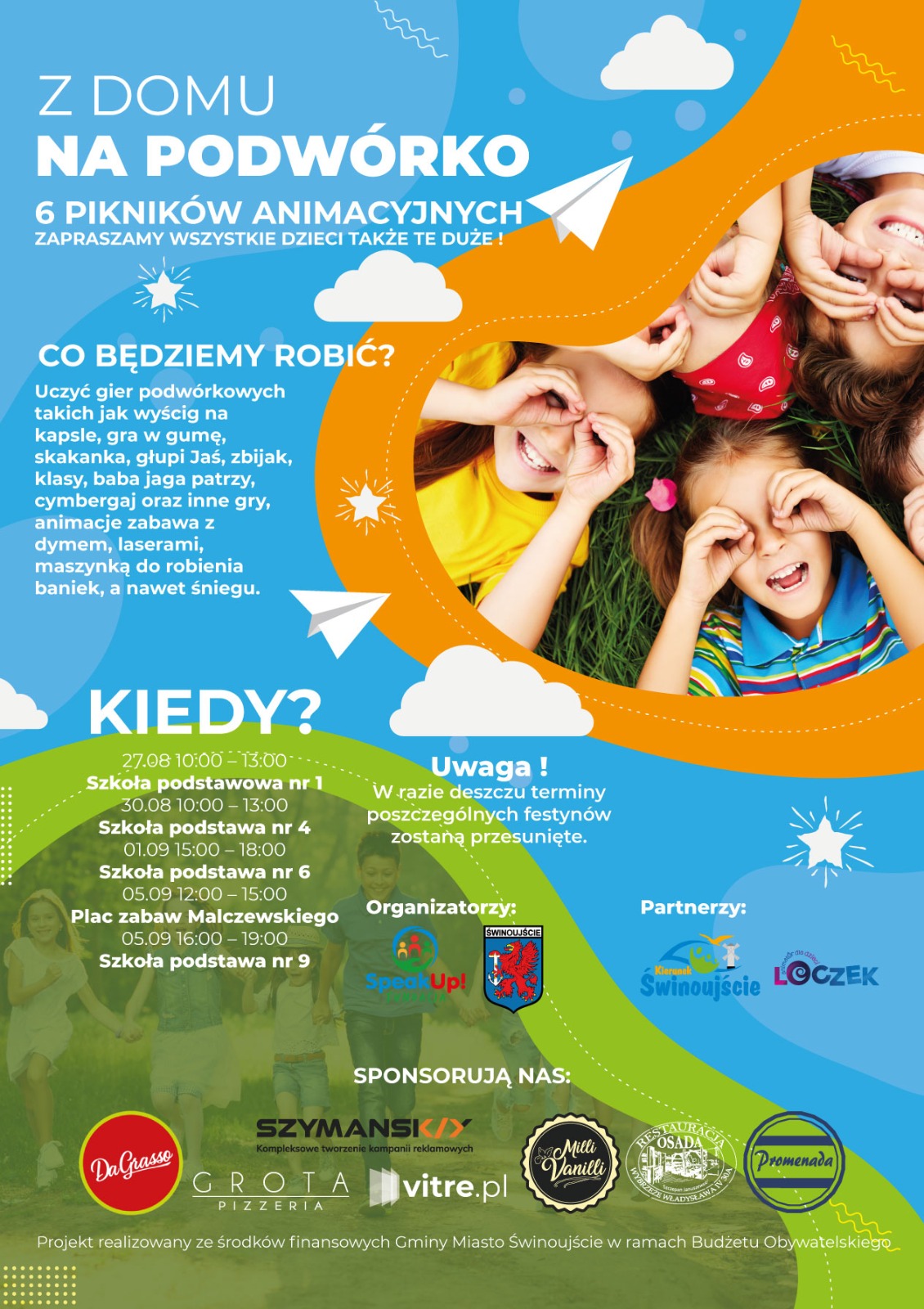 Pierwsza animacja w najbliższy piątek 27.08.2021 na boisku Szkoły Podstawowej przy ul. Gabriela Narutowicza 10 między godziną 10:00 a 13:00. Na dzieci czekać będzie moc atrakcji –