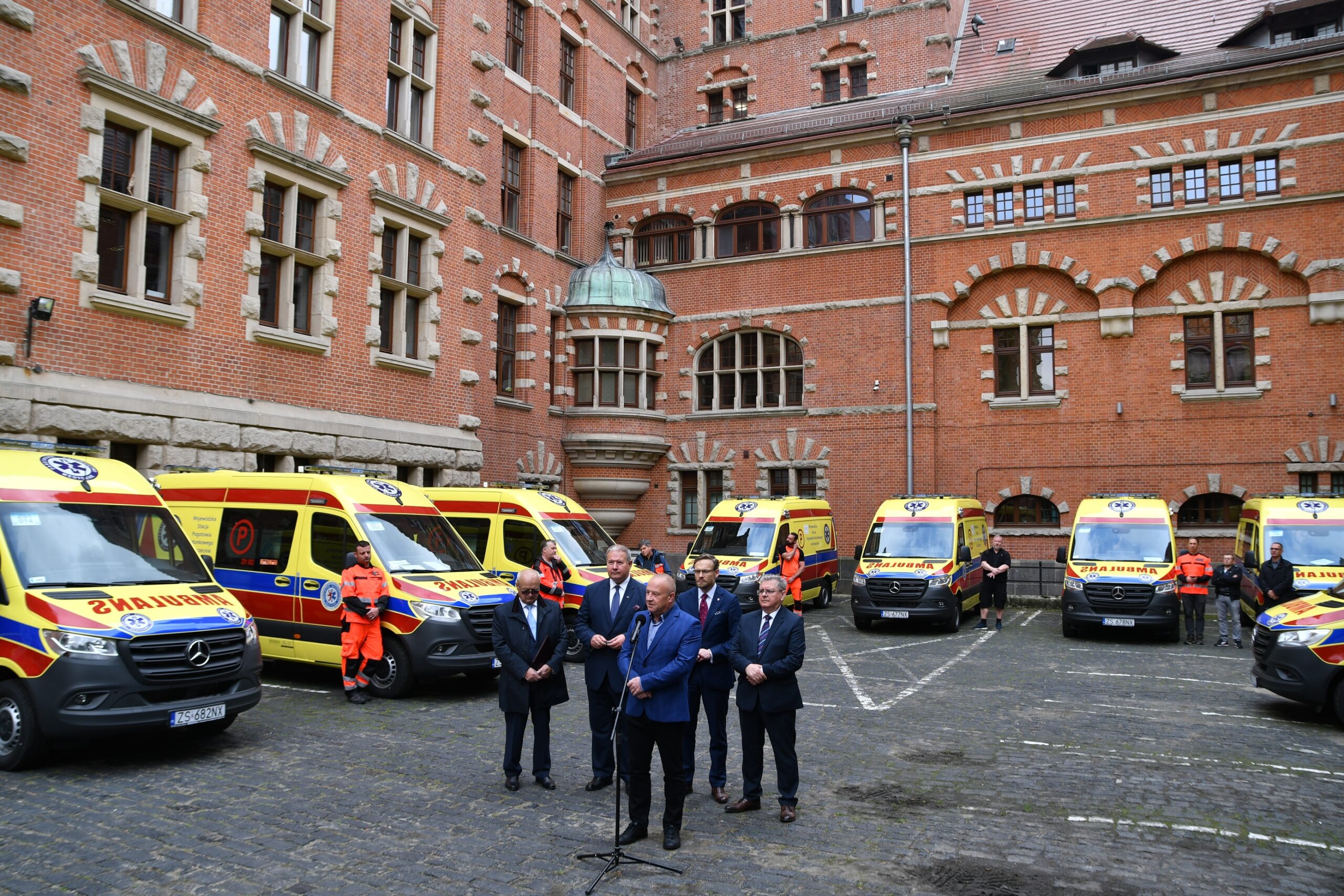 Nowe ambulanse typu C, czyli ruchome jednostki intensywnej opieki trafiły dziś do Wojewódzkiej Stacji Pogotowia Ratunkowego. Wojewoda Zbigniew Bogucki wraz z posłami Czesławem Hocem, Leszkiem Dobrzyńskim i Arturem Szałabawką oraz dyrektorem WSPR Romanem Pałką przekazał kluczyki do 10 ambulansów dla zespołów ratownictwa medycznego z filii WSPR w Szczecinie, Nowogardzie, Dębnie, Resku, Sławnie, Koszalinie, Kołobrzegu, Międzyzdrojach i Drawsku Pomorskim.