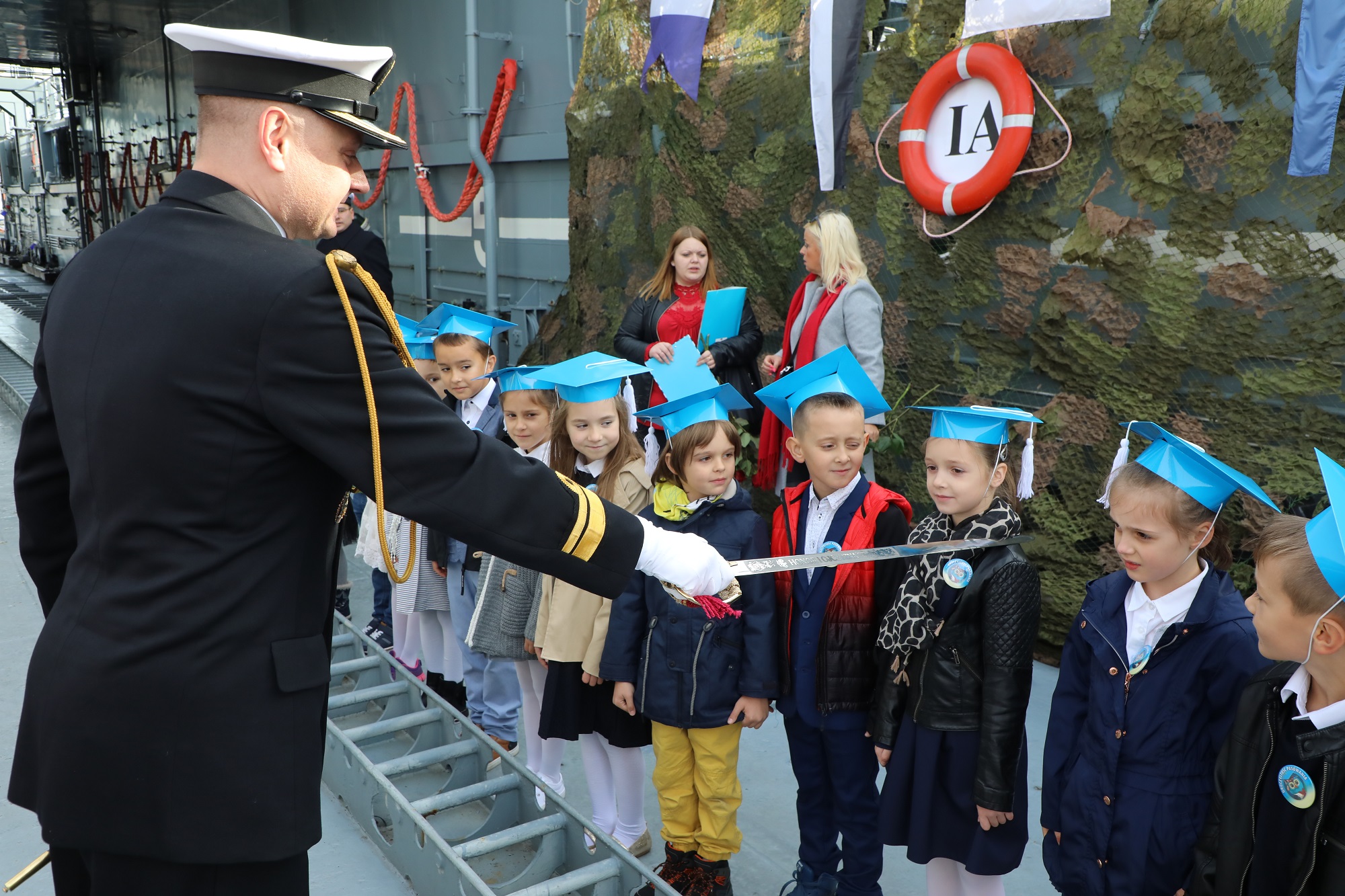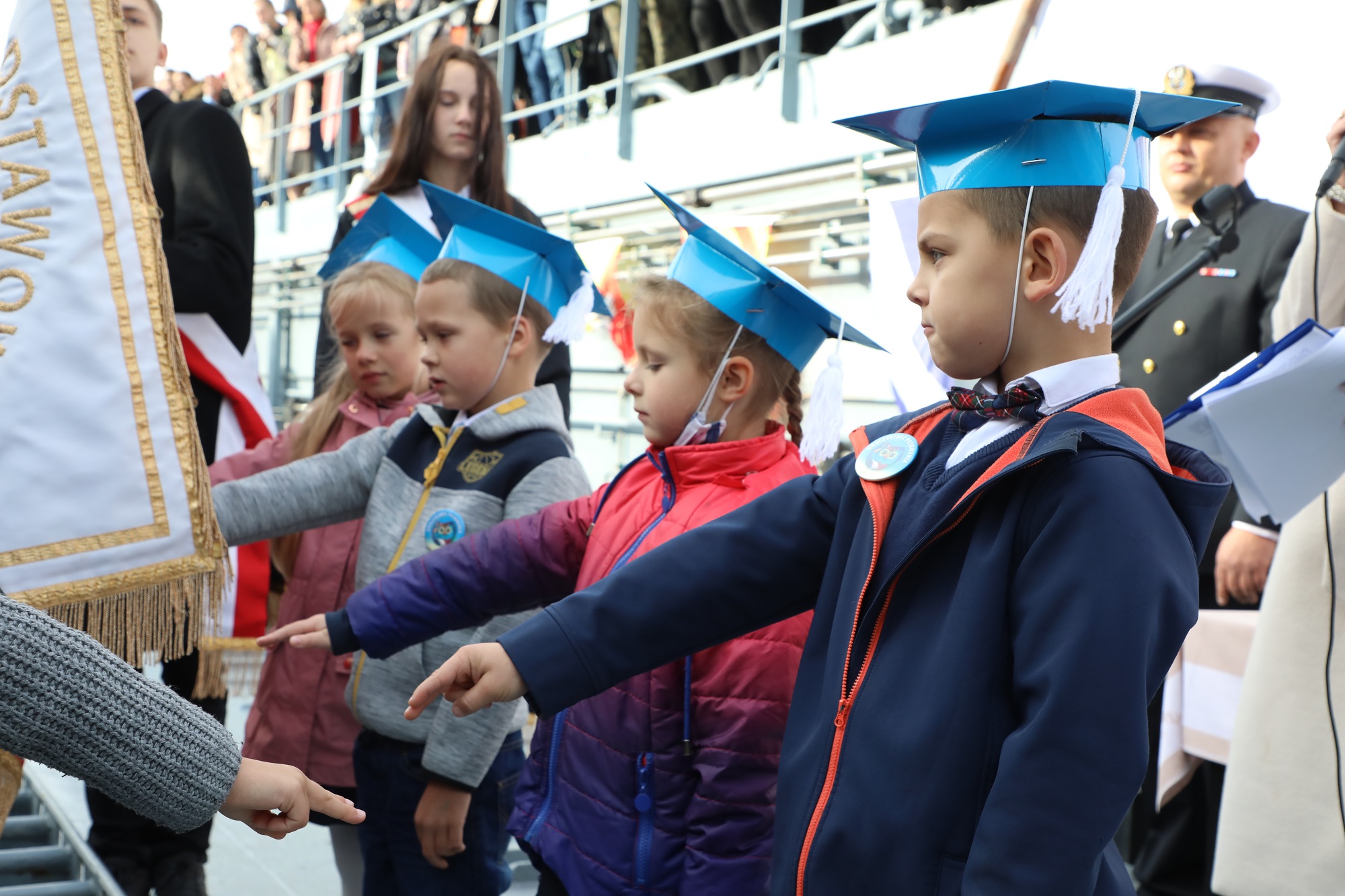 Na pokładzie okrętu dzieci czterech klas pierwszych stały się uczniami. Uroczystość poprowadził oraz nadał aktu pasowania dowódca okrętu ORP „Gniezno” kmdr ppor. Przemysław Lizik poprzez dotknięcie ramion uczniów pałaszem. Uczniowie ślubowali na sztandar szkoły sumienną naukę i rzetelne wywiązywanie się z obowiązków uczniowskich. Ślubowanie złożyli także rodzice przyrzekając, że wspierać będą swoje dzieci w wypełnianiu szkolnych powinności.