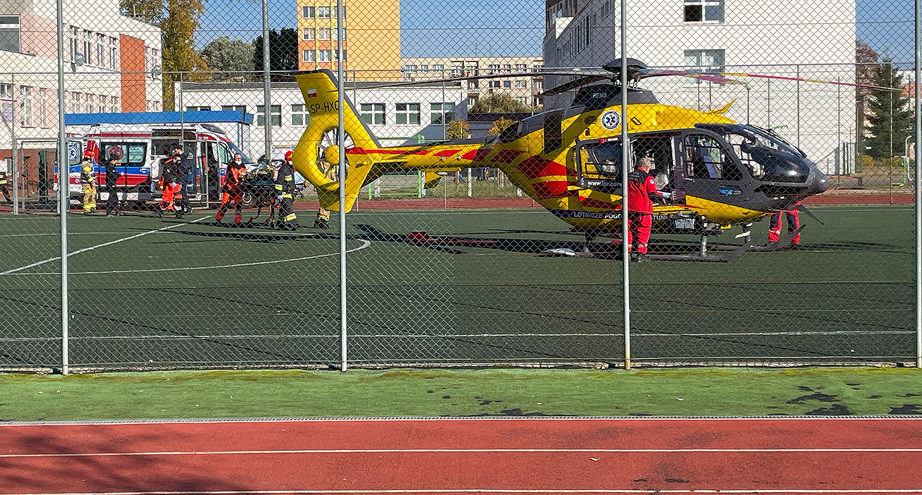 Aby przyśpieszyć transport poszkodowanej do szpitala, wezwano śmigłowiec. Maszyna wylądowała na pobliskim „Orliku”.